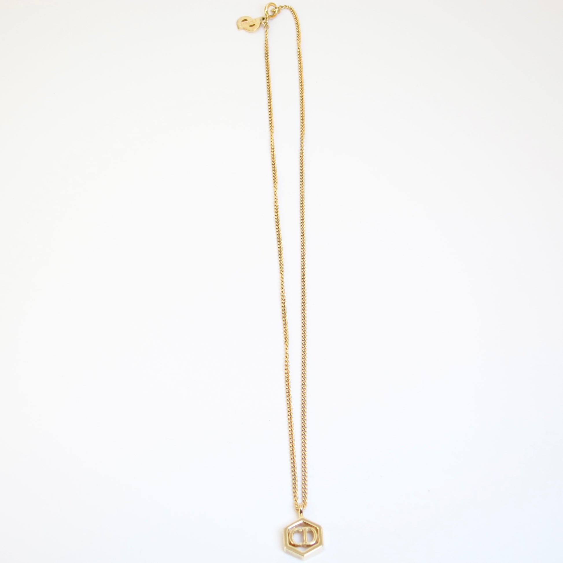 Christian Dior Vintage CD Logo in Hexagon Golden Necklace