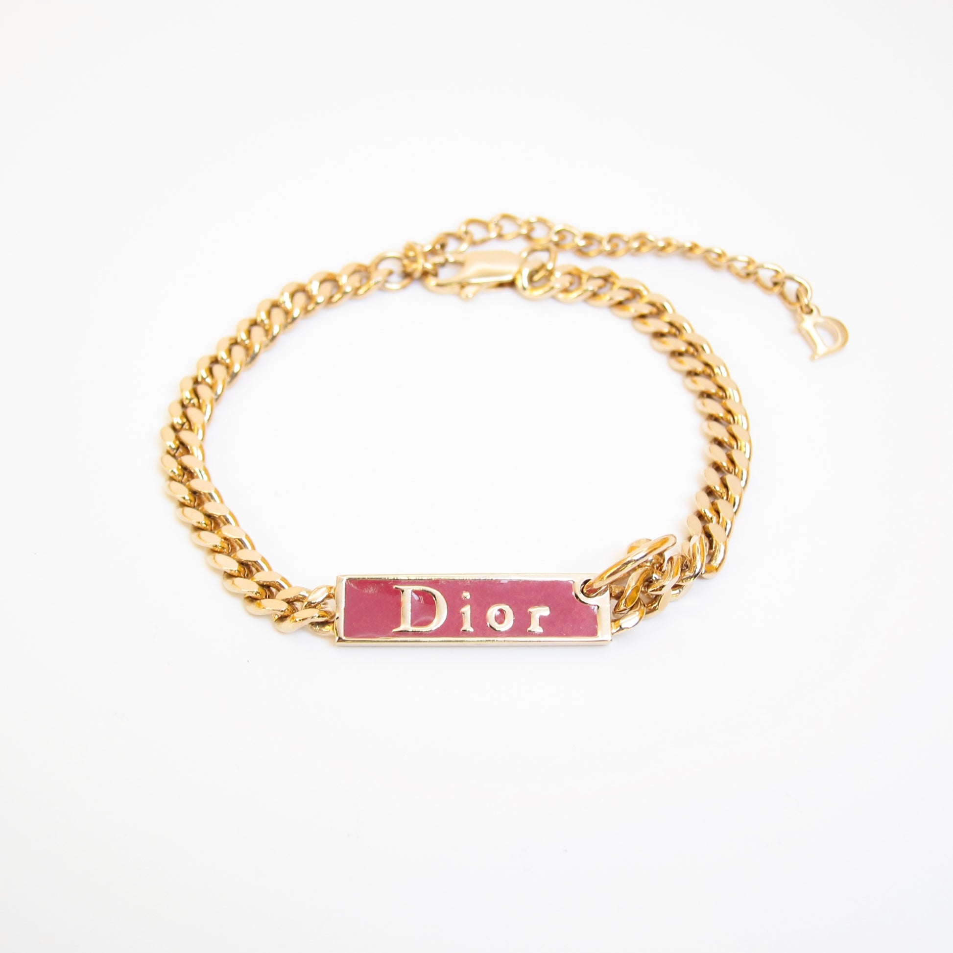 Christian Dior Vintage Dior Logo in Red and Golden Bracelet