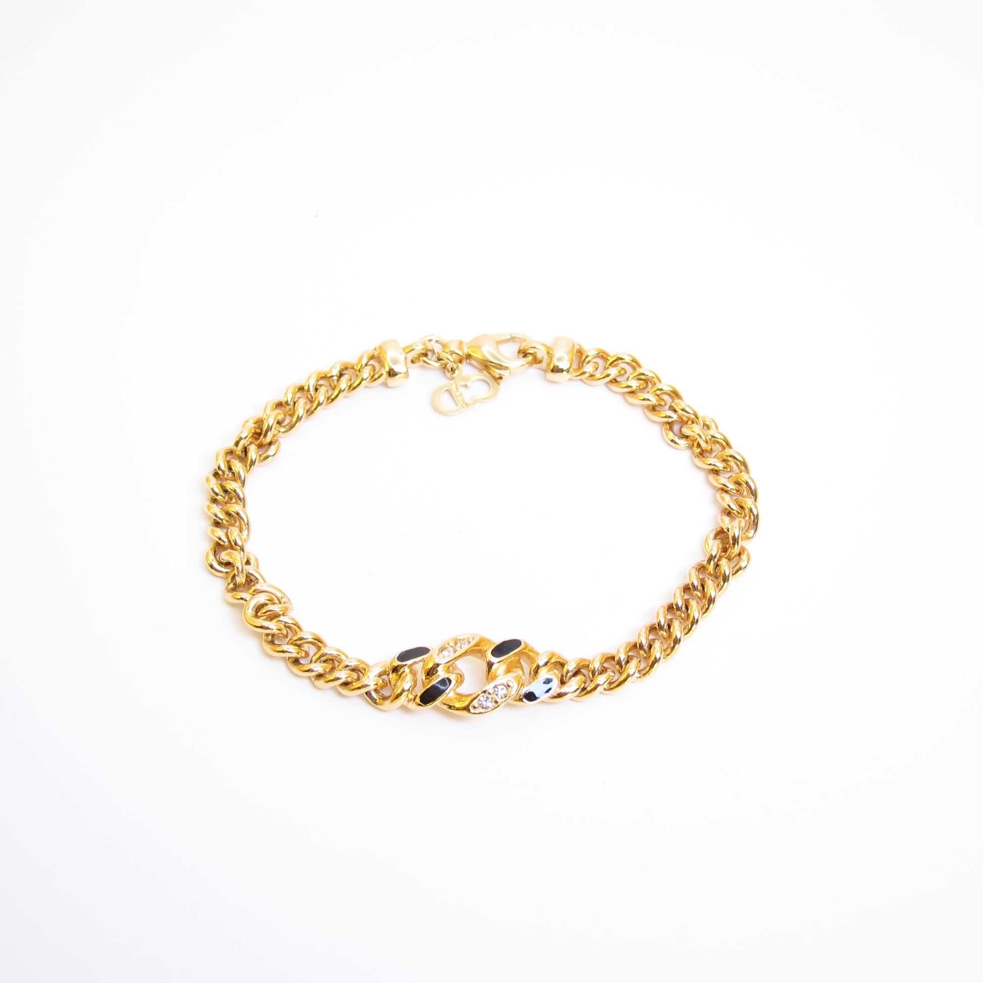 Christian Dior Vintage Rhinestone and Black Golden Bracelet