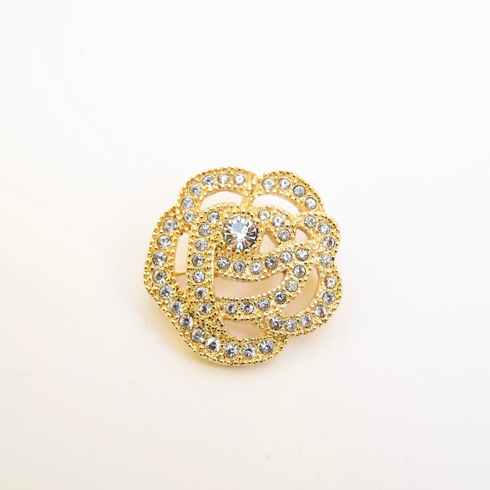 Flower Motif with Rhinestone Golden Brooch