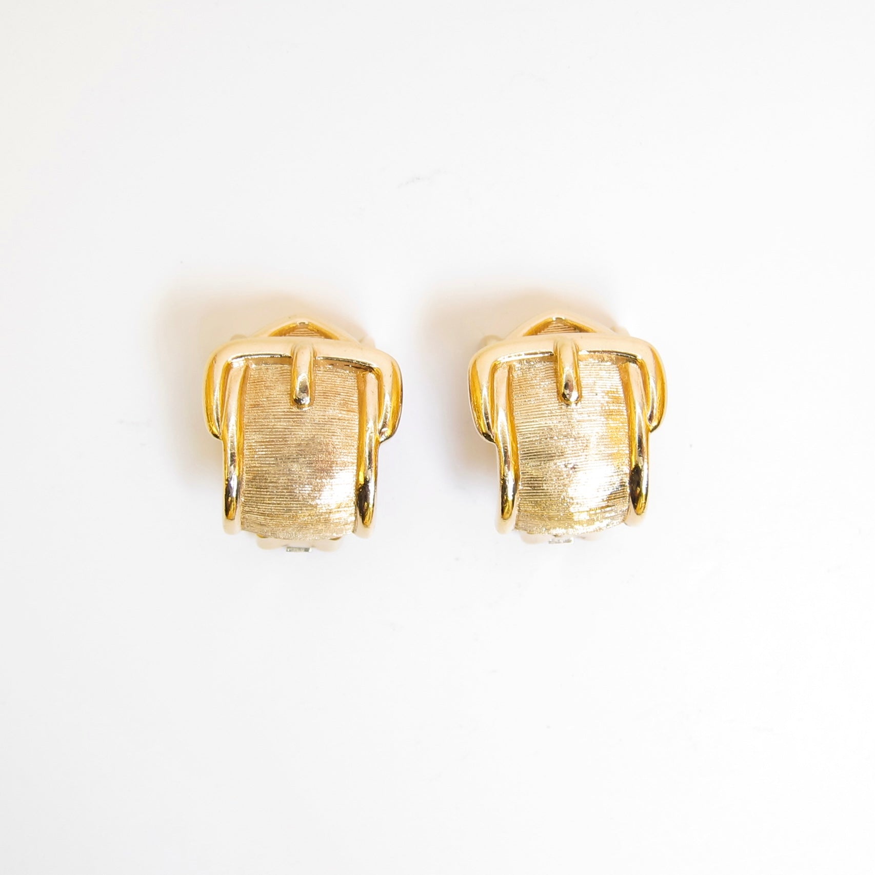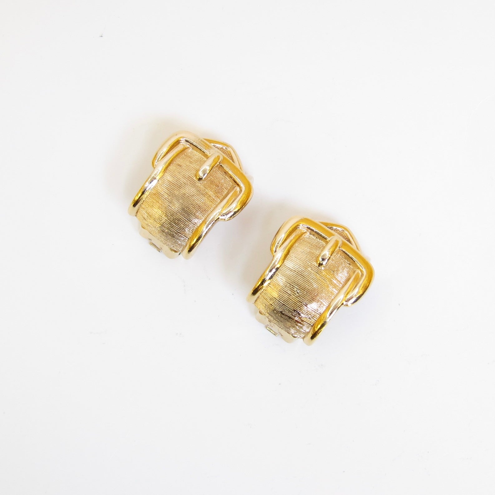 Christian Dior 復古皮帶扣金色夾式耳環