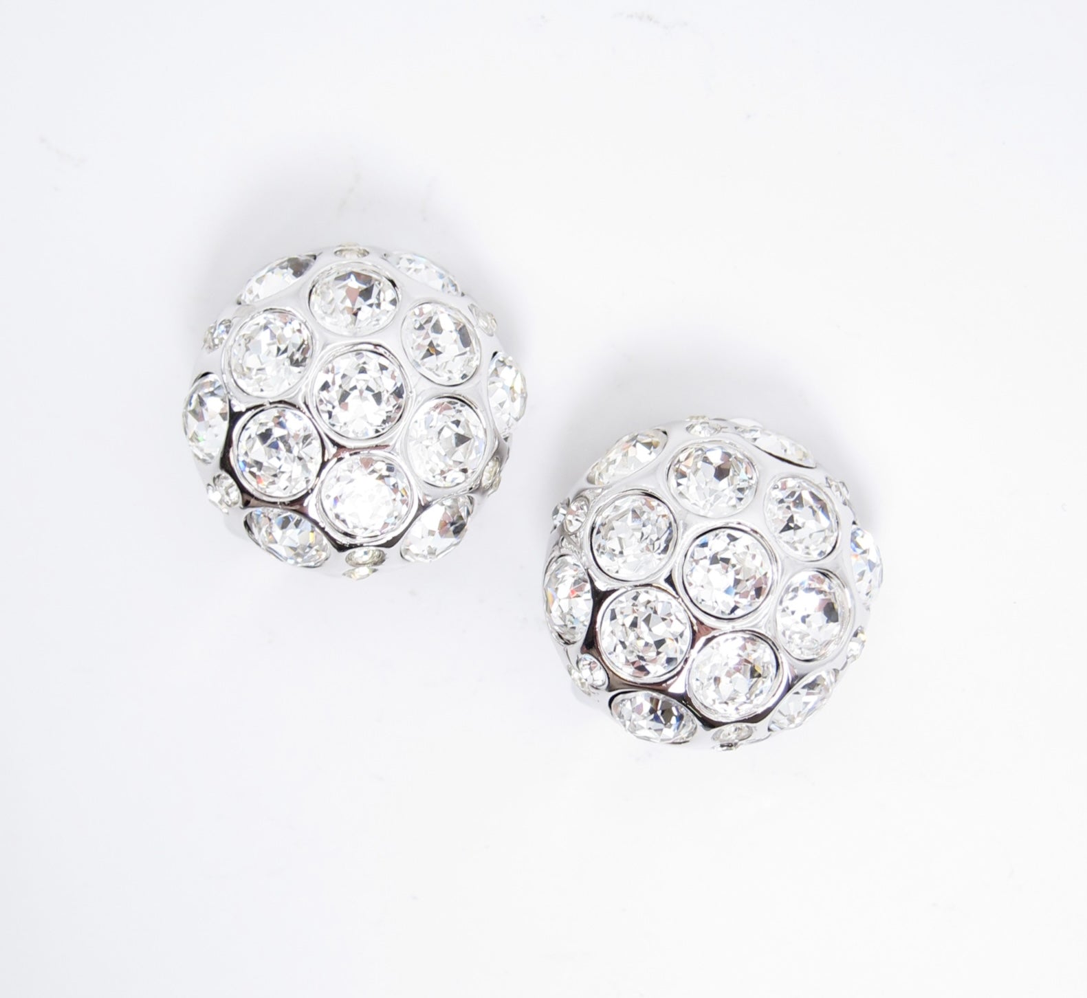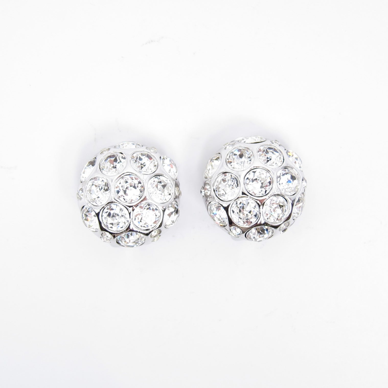Christian Dior 復古圓形鑲鑽銀色夾式耳環