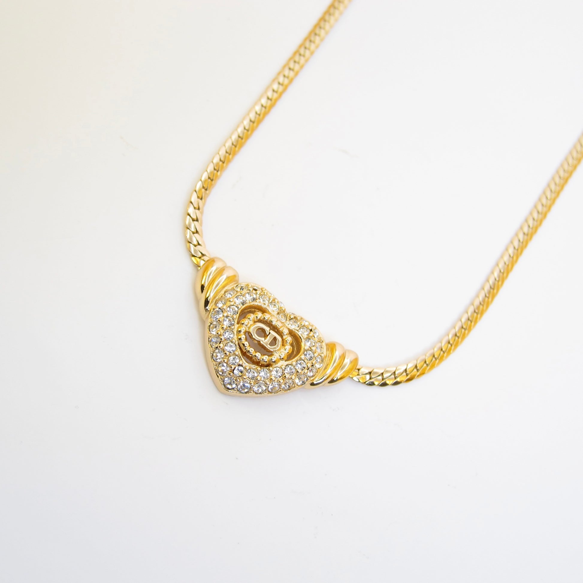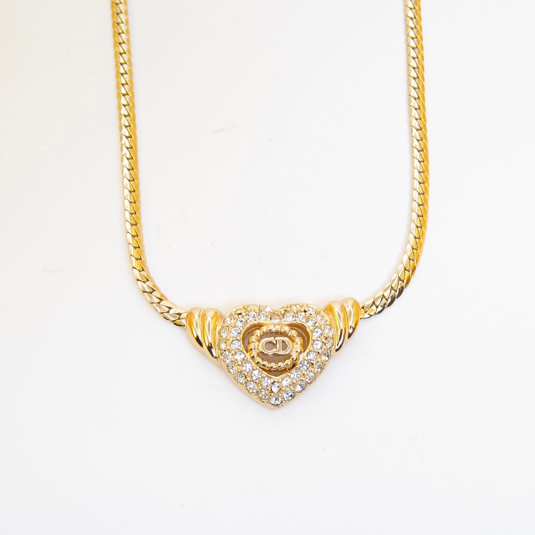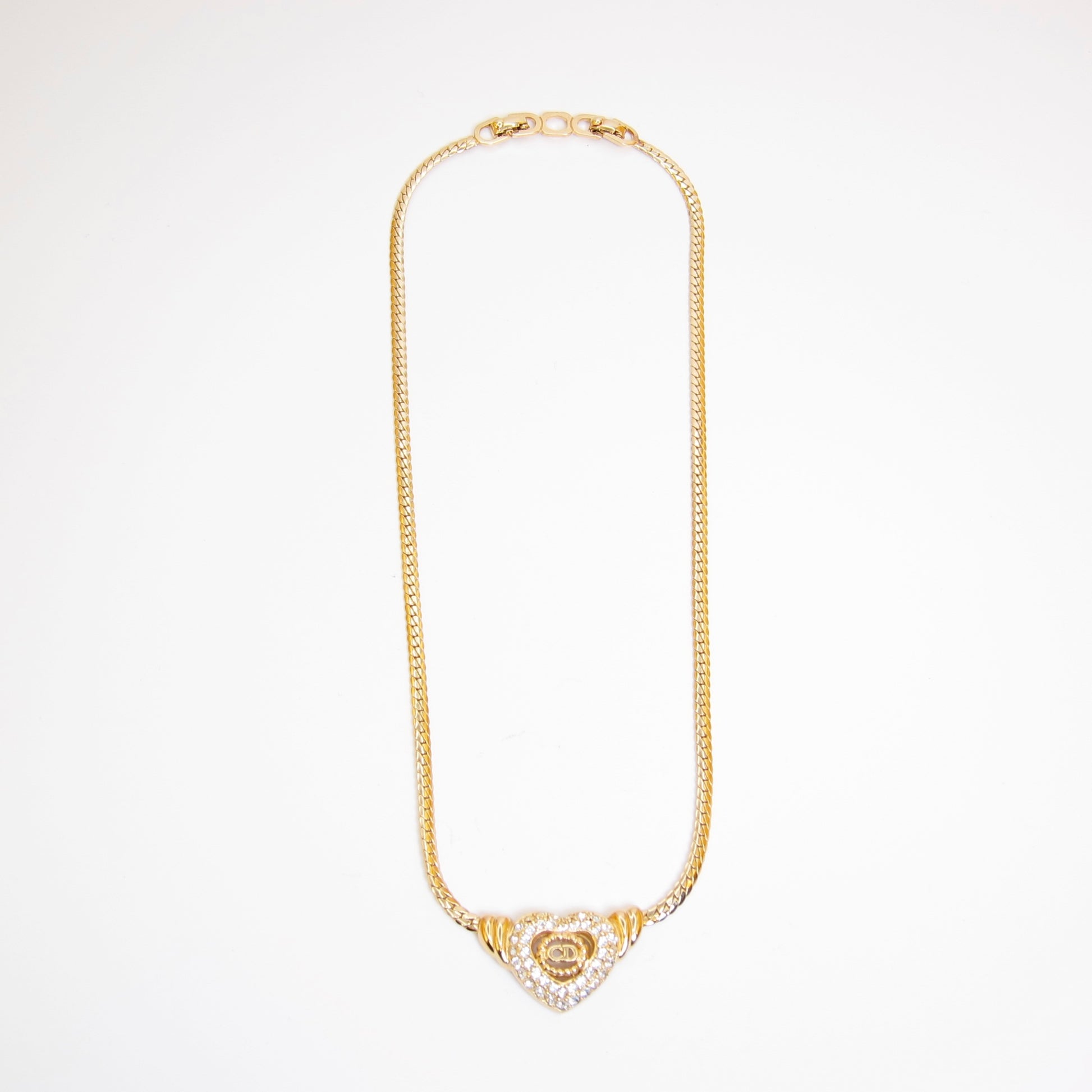 Christian Dior 復古 CD 心型水鑽金色項鍊