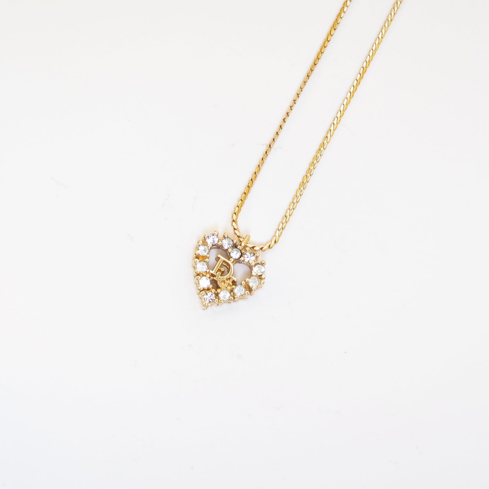 Christian Dior 復古 Dior 心型水鑽金色項鍊