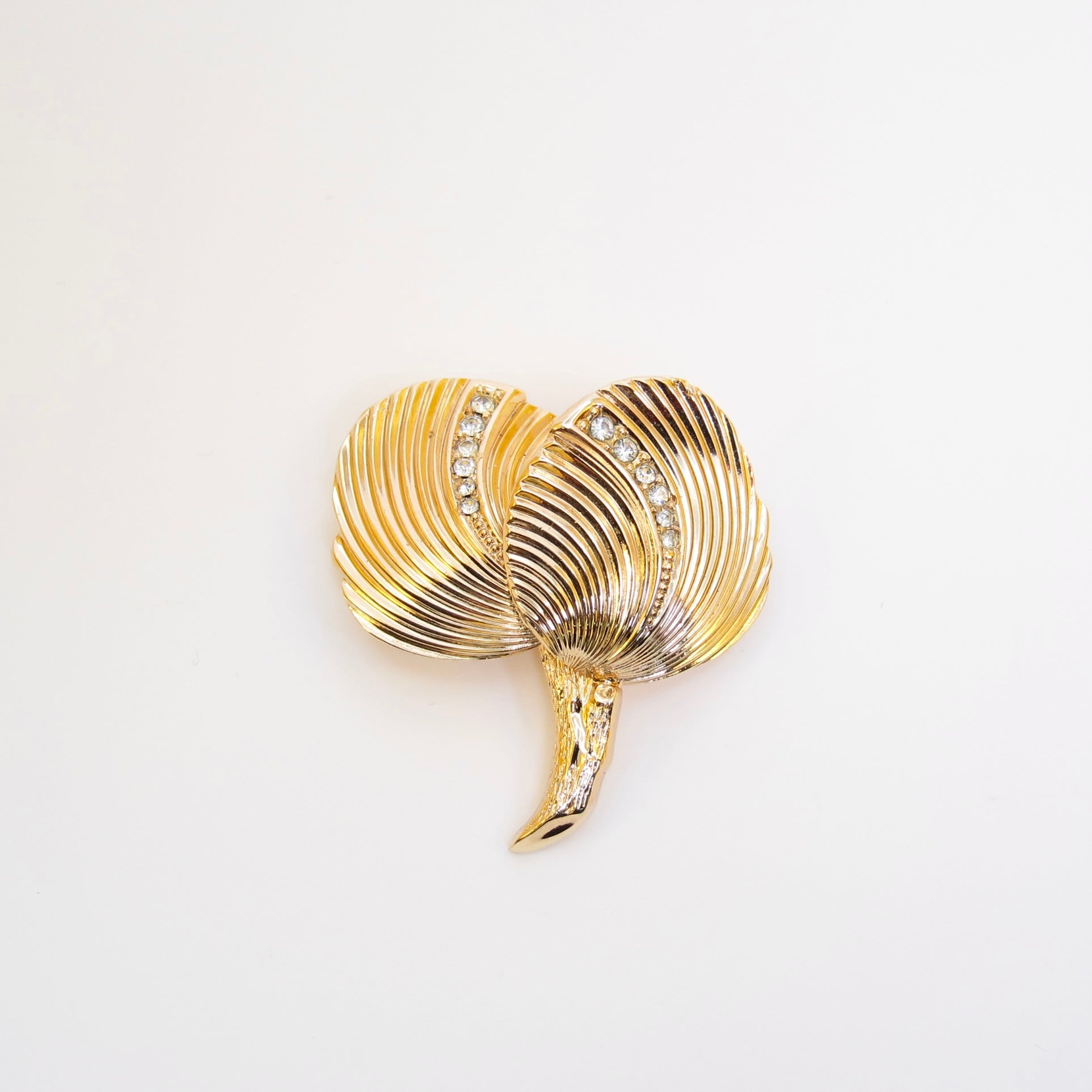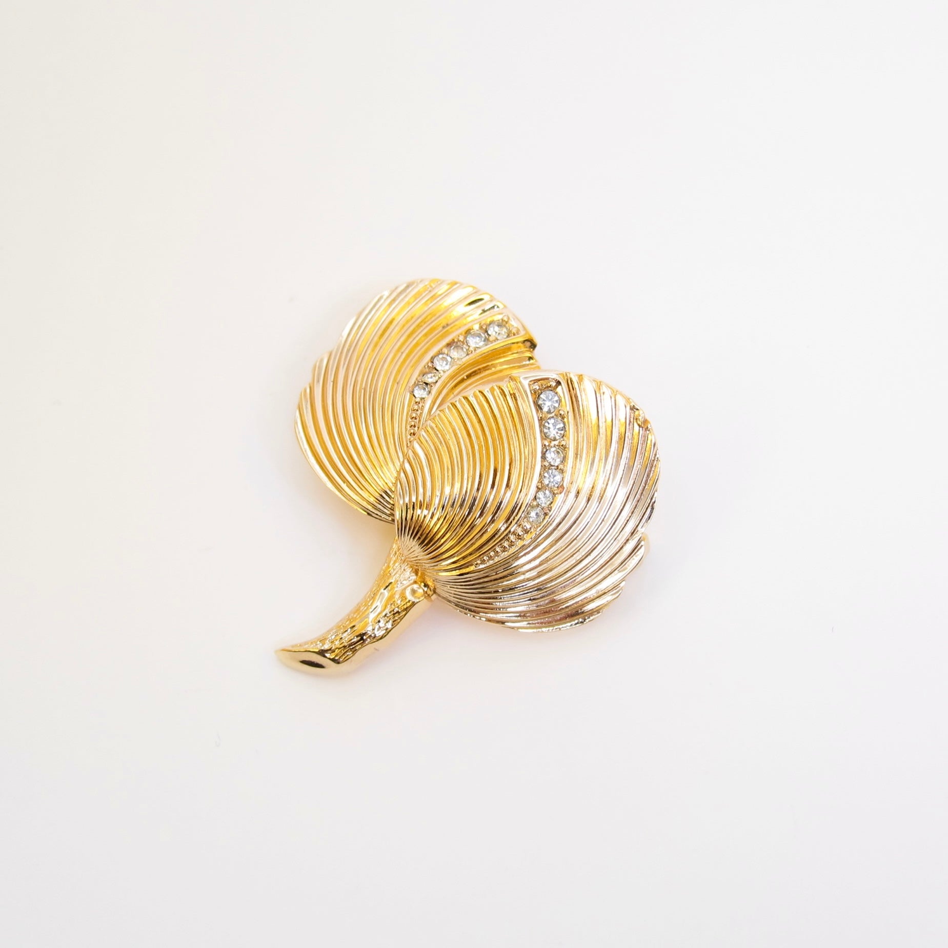 Christian Dior Vintage Leaves Motif with Rhinestone Golden Brooch