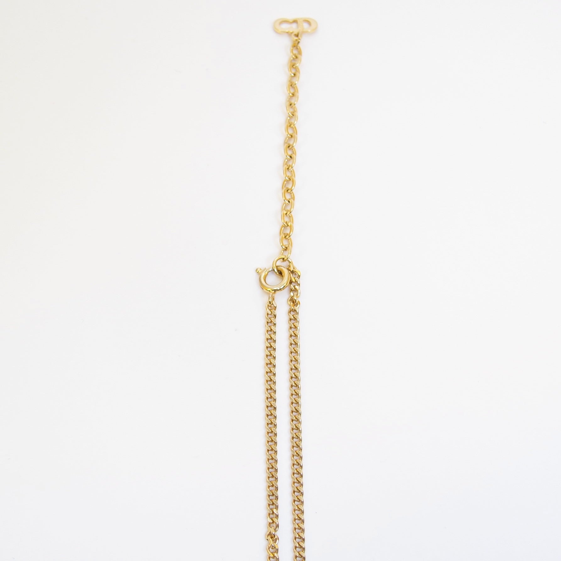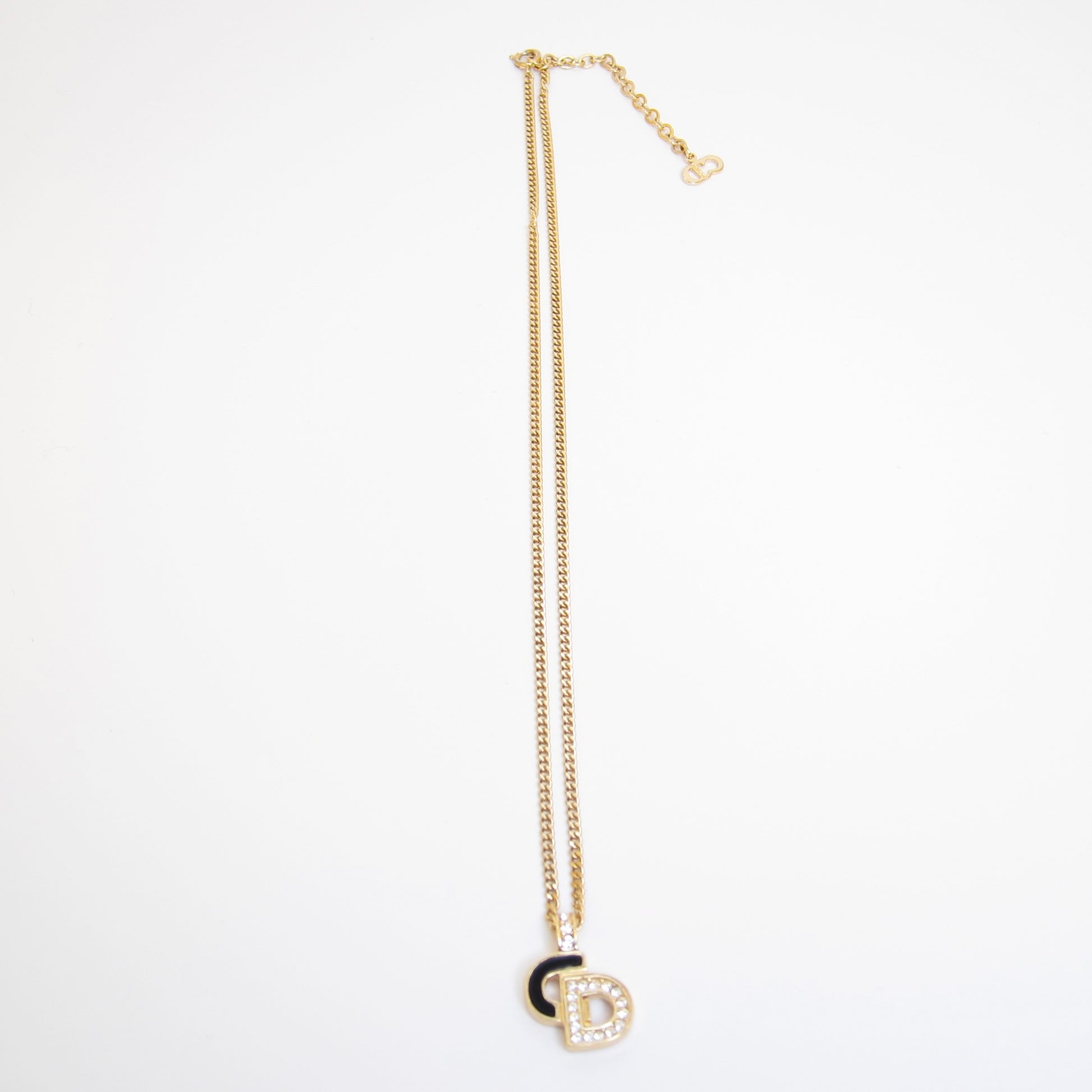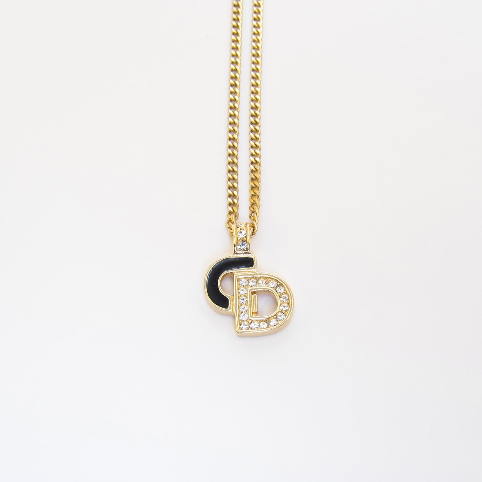 Christian Dior Vintage CD Logo Black and Rhinestone Golden Necklace