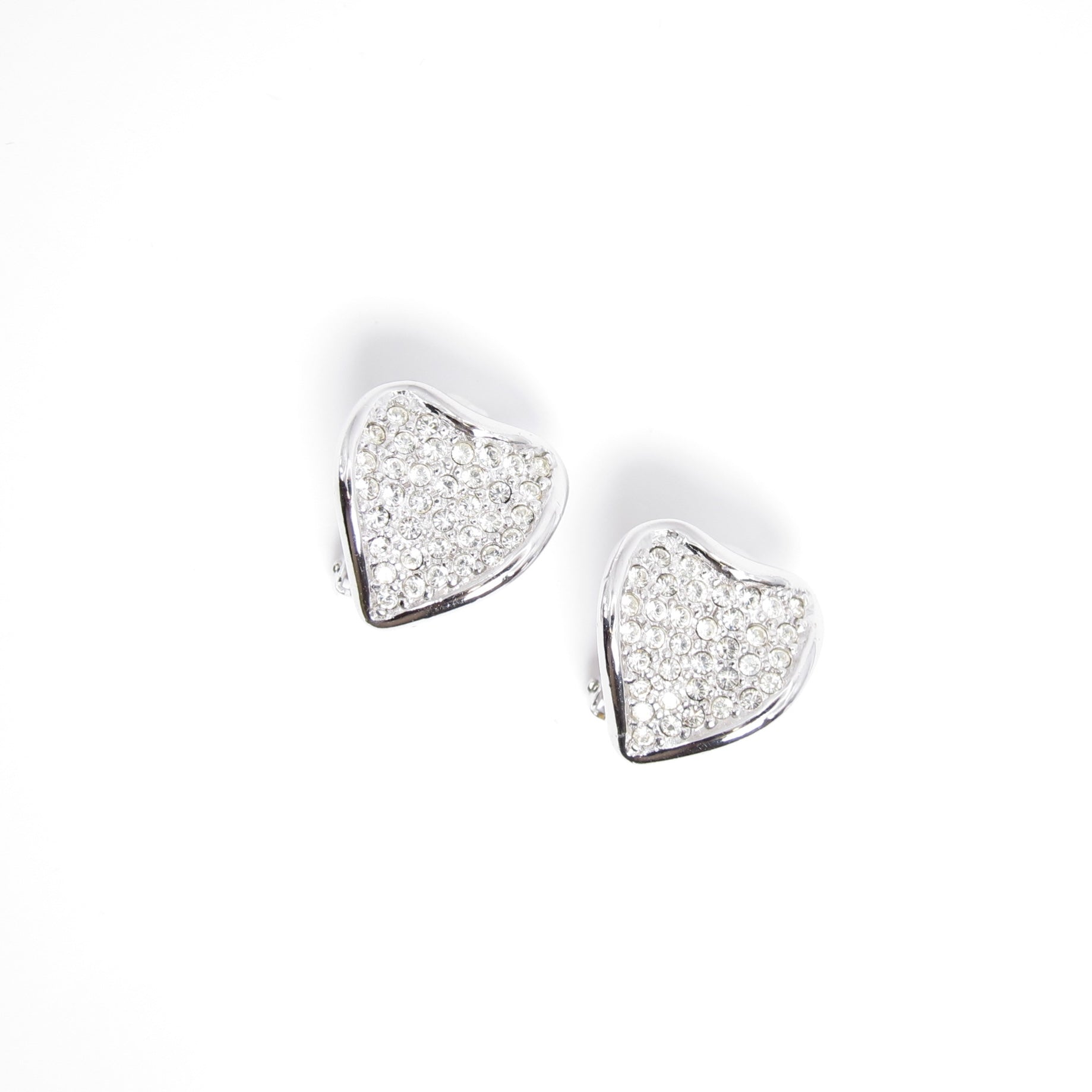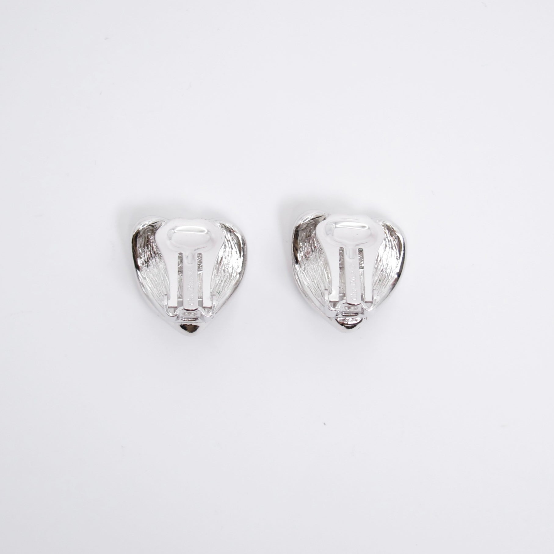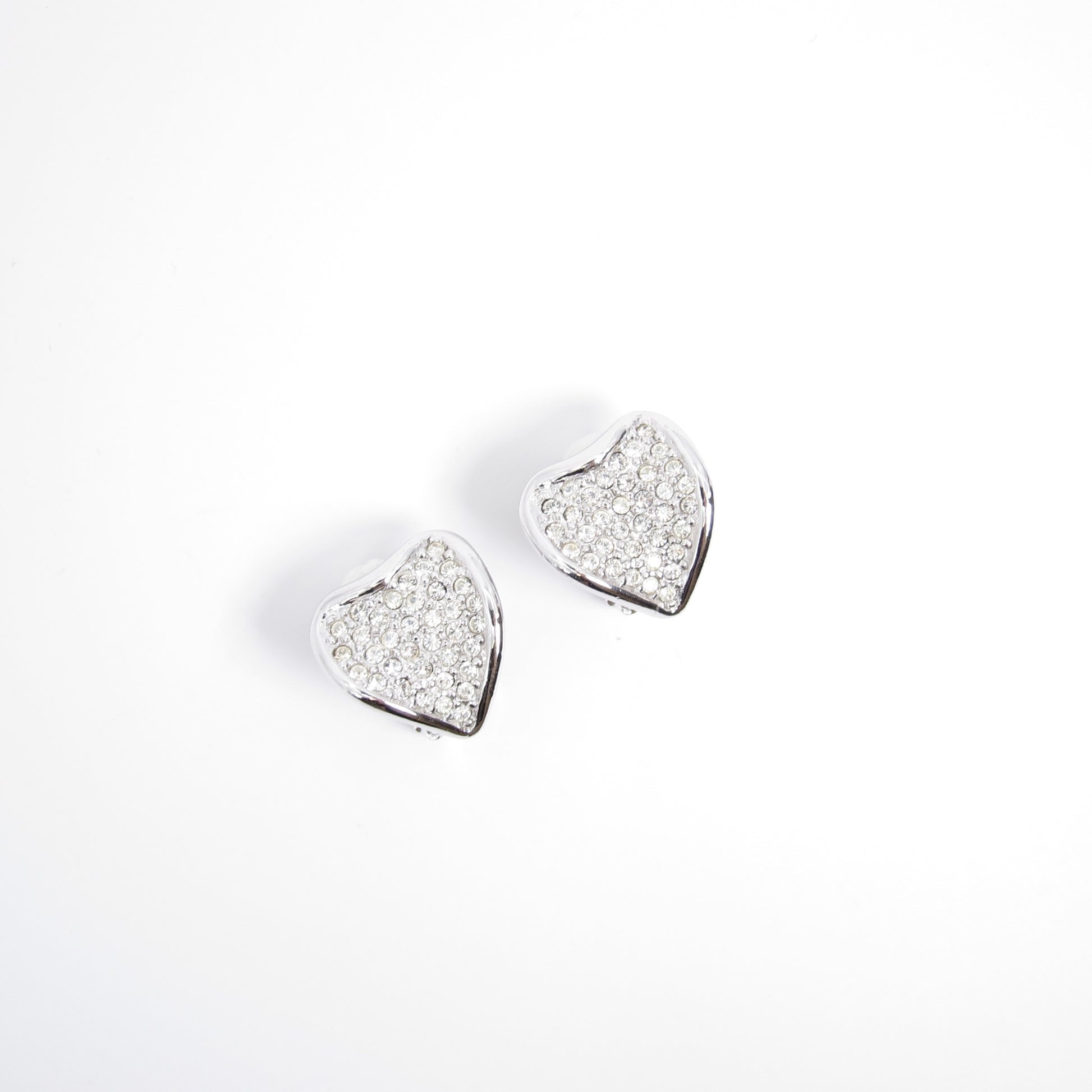 Christian Dior Vintage Heart-shaped with Rhinestone Silver Clip-on Earrings