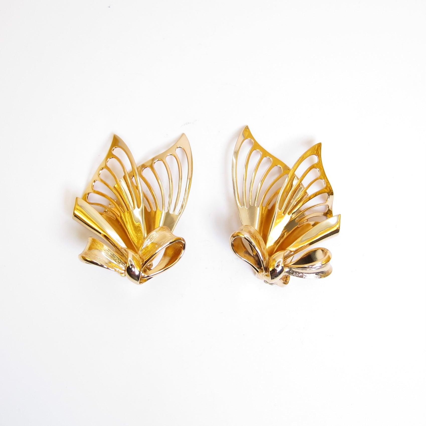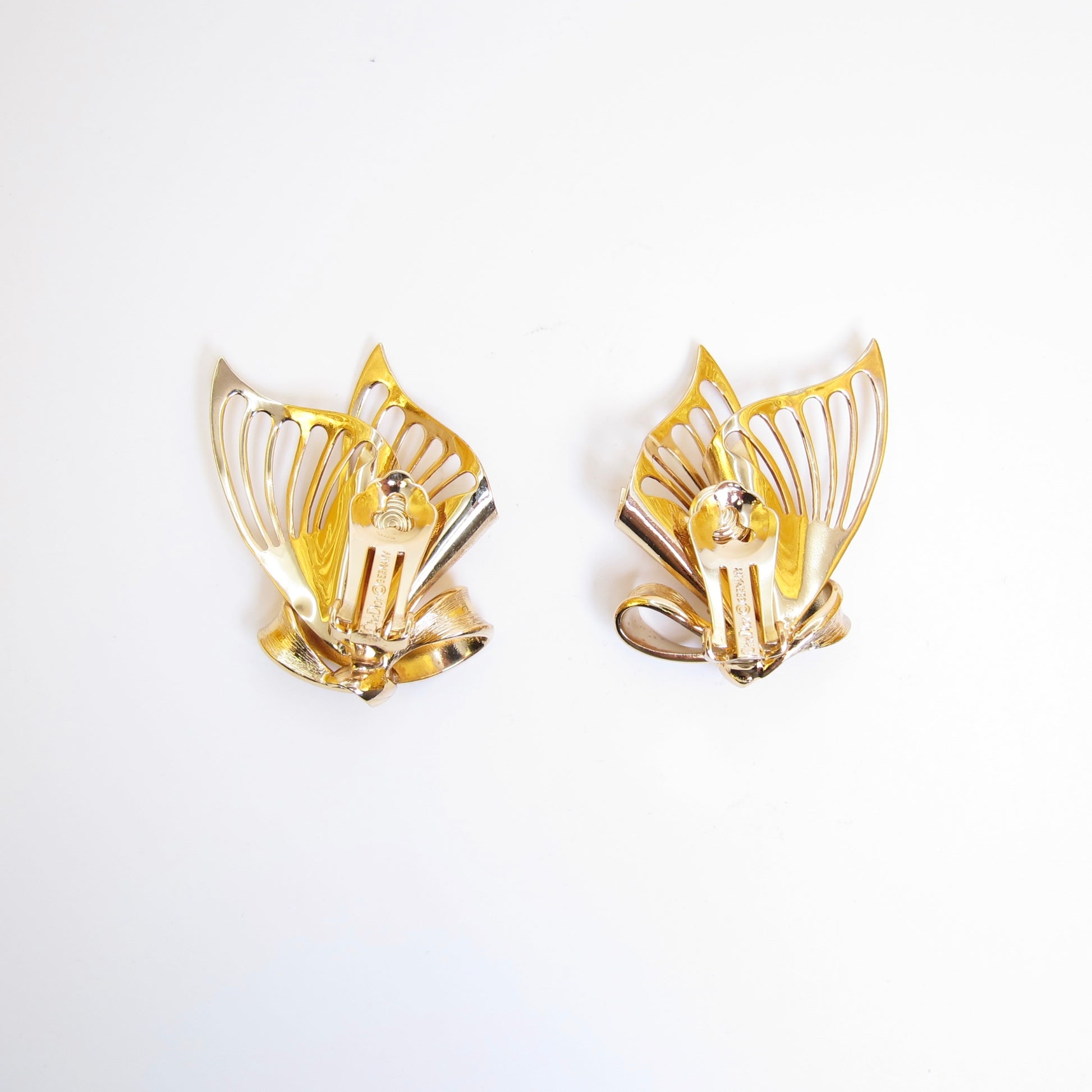 Christian Dior Vintage Ribbon Butterfly Golden Clip-on Earrings