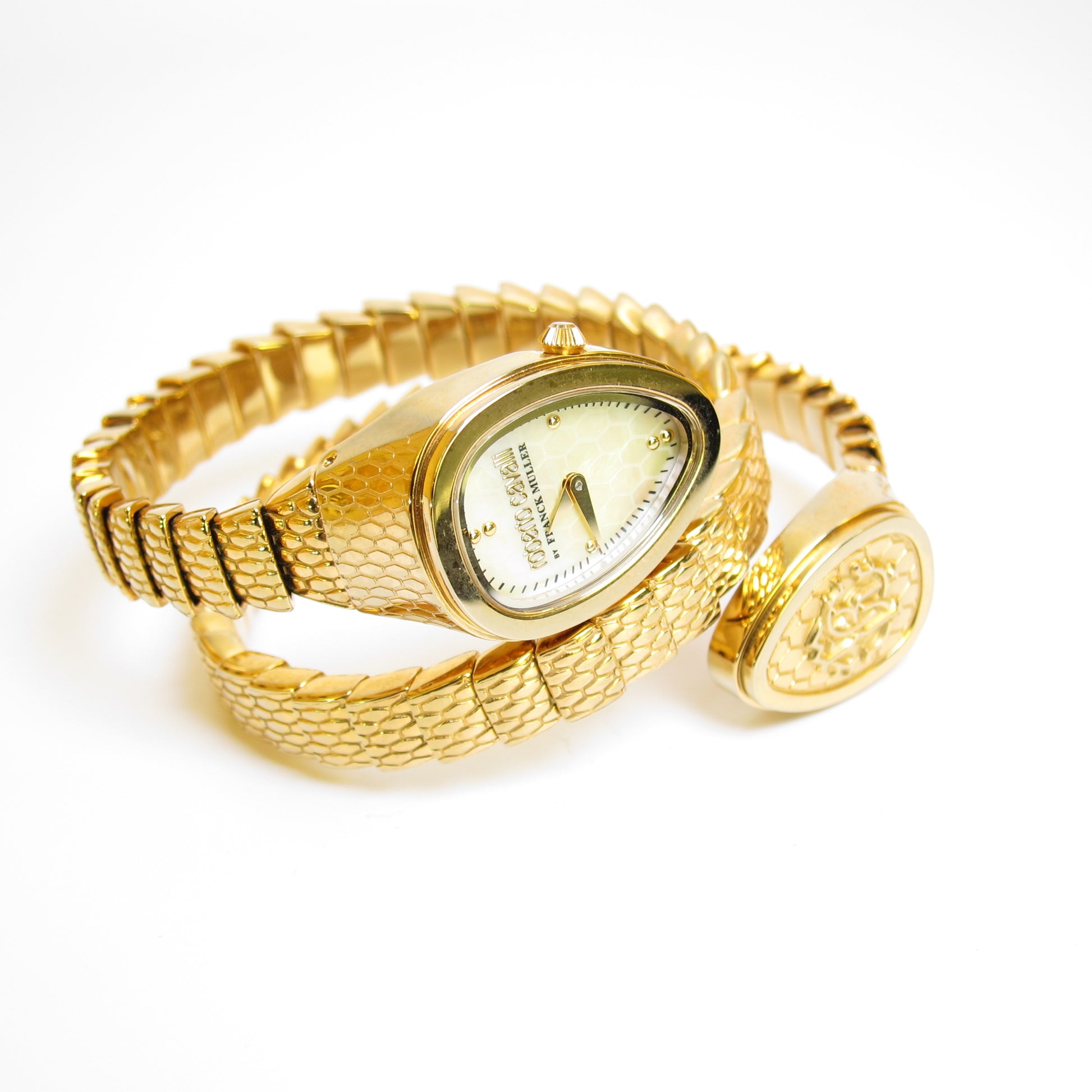 Roberto Cavalli By Franck Muller Shell Pearl Face Snake Core Golden Watch