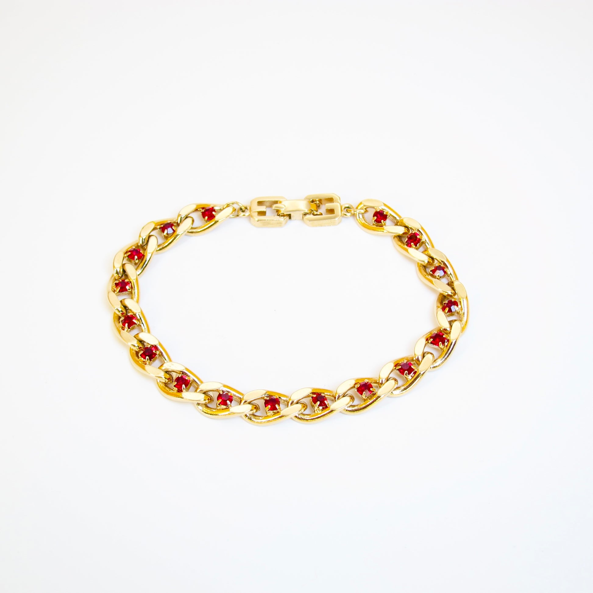 Givenchy Vintage Stylish Red Rhinestone Golden Chain Bracelet