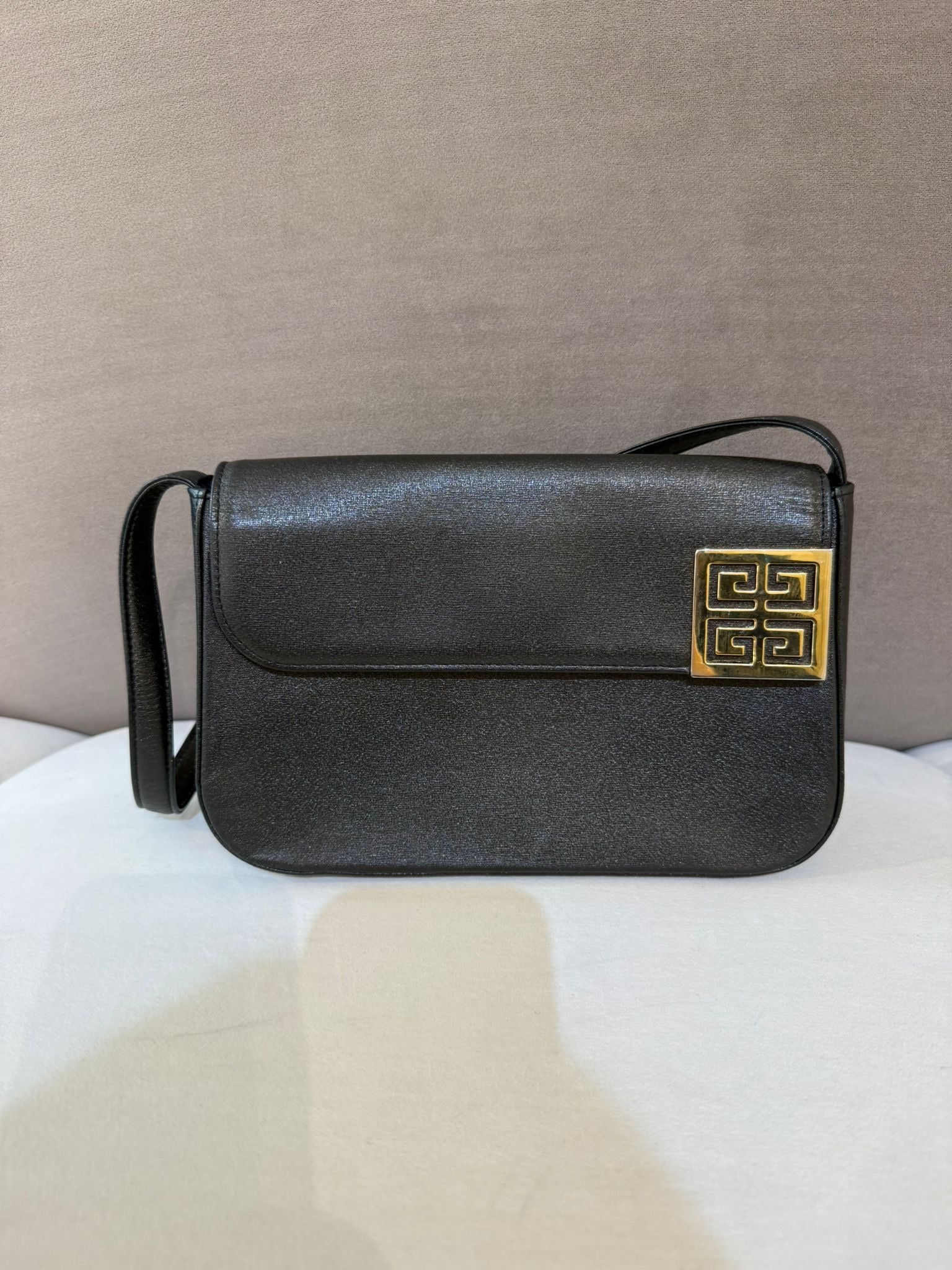 During the 1970s–1990s, Givenchy was celebrated for its architectural handbag designs, often featuring bold hardware and structured silhouettes. The square logo plaque became a signature emblem, symbolizing the house’s fusion of minimalism and Parisian elegance.