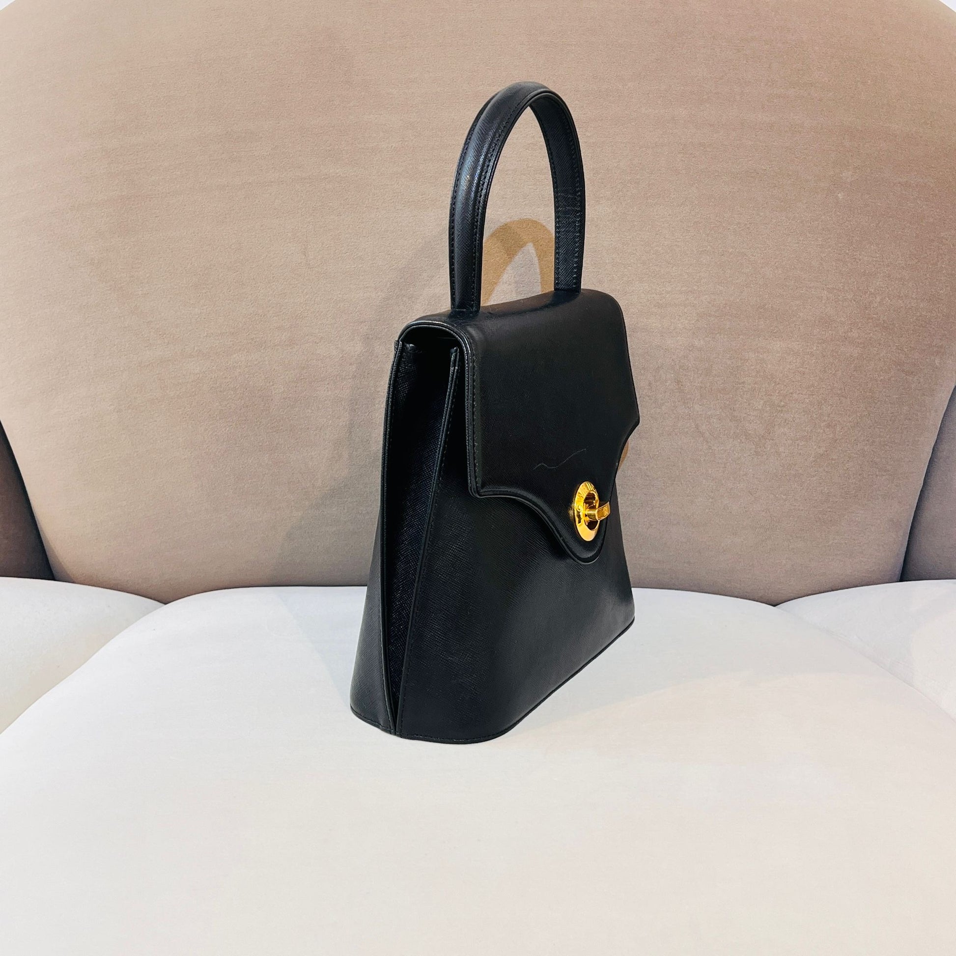Givenchy Vintage Turn Lock Black Leather Top Handle Bag