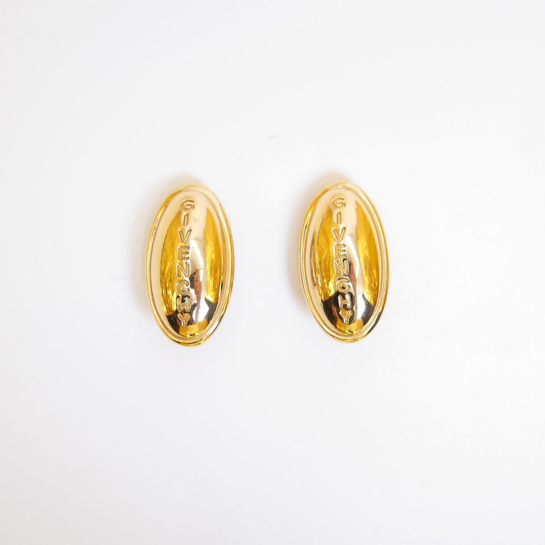 紀梵希復古款紀梵希Logo橢圓形金色夾式耳環