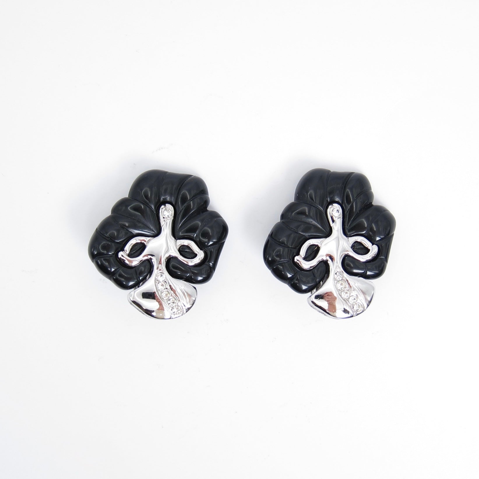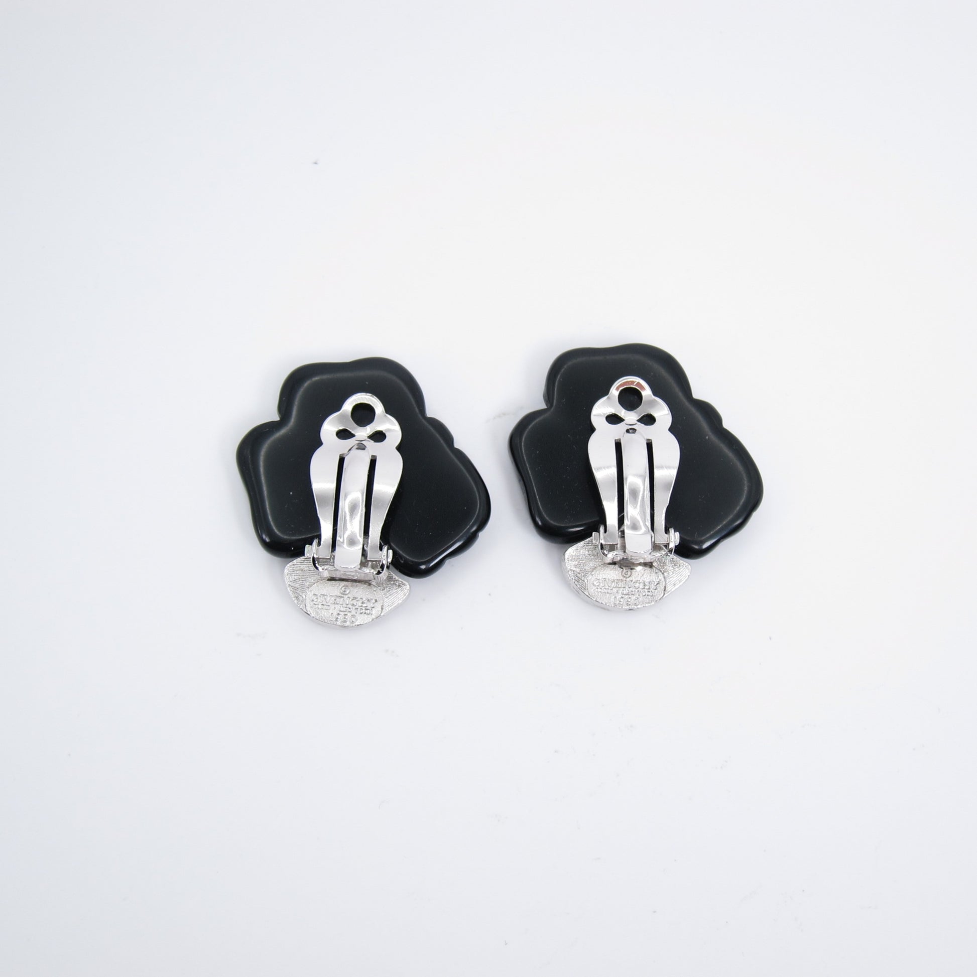 紀梵希復古時尚黑色鑲鑽銀色夾式耳環