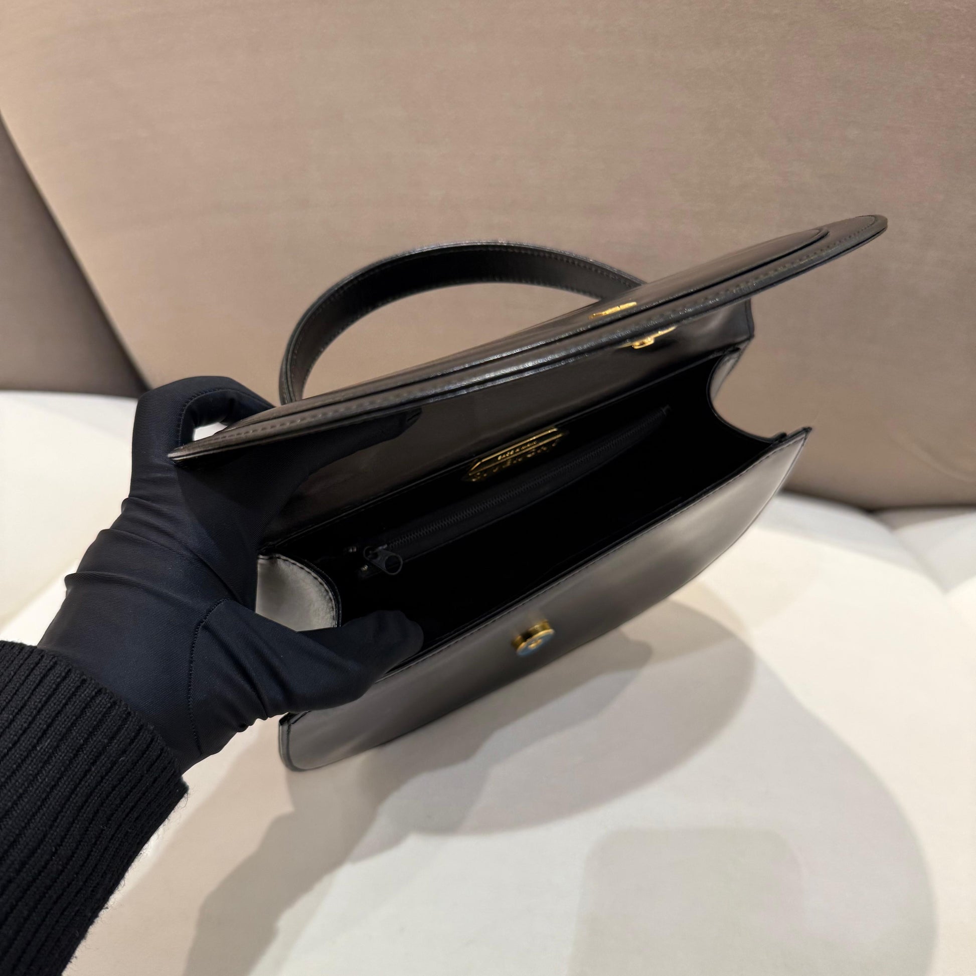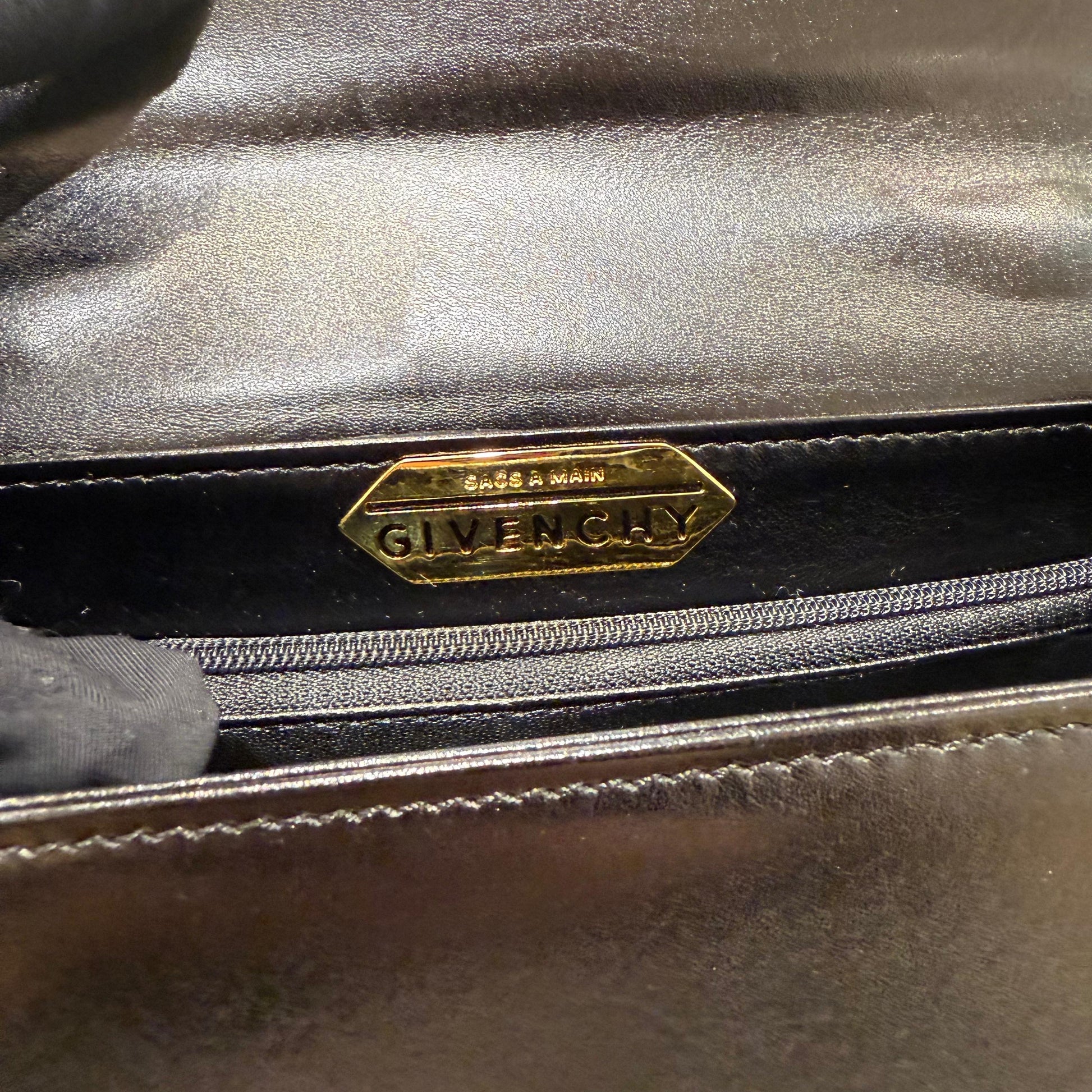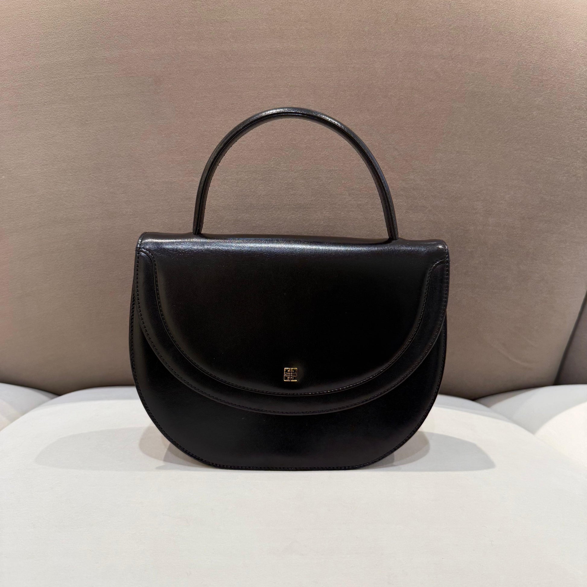 紀梵希復古黑色皮革弧形頂部手柄手提包