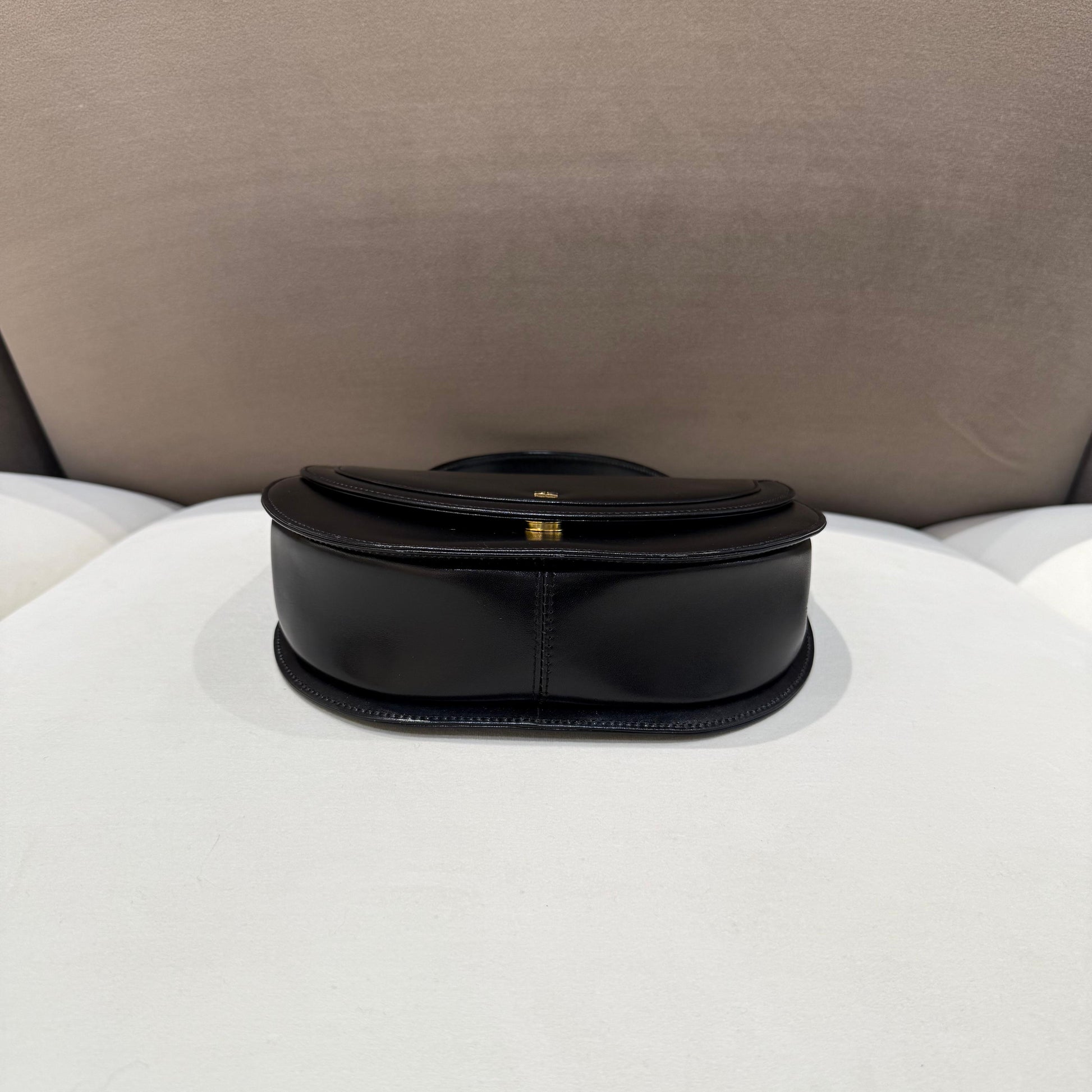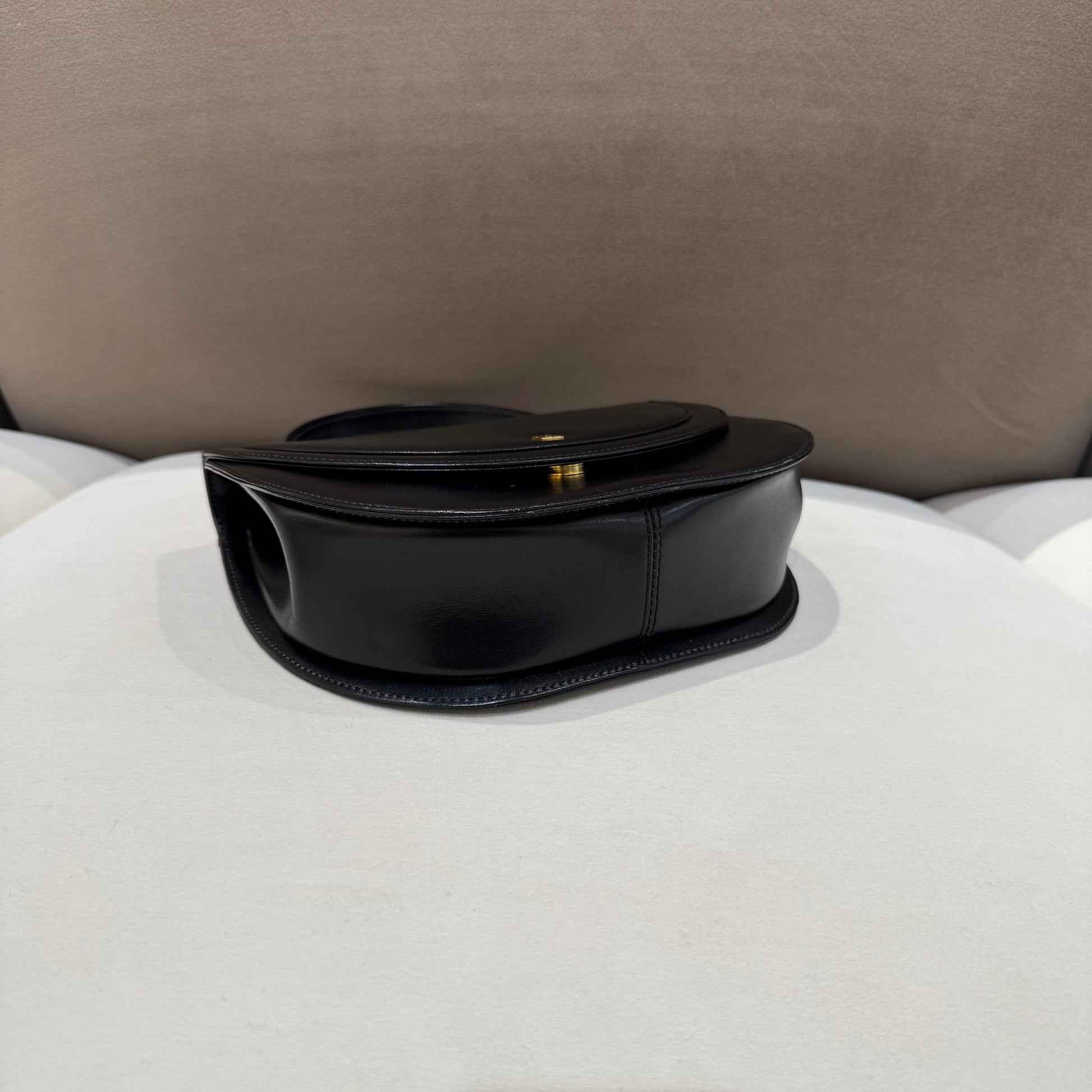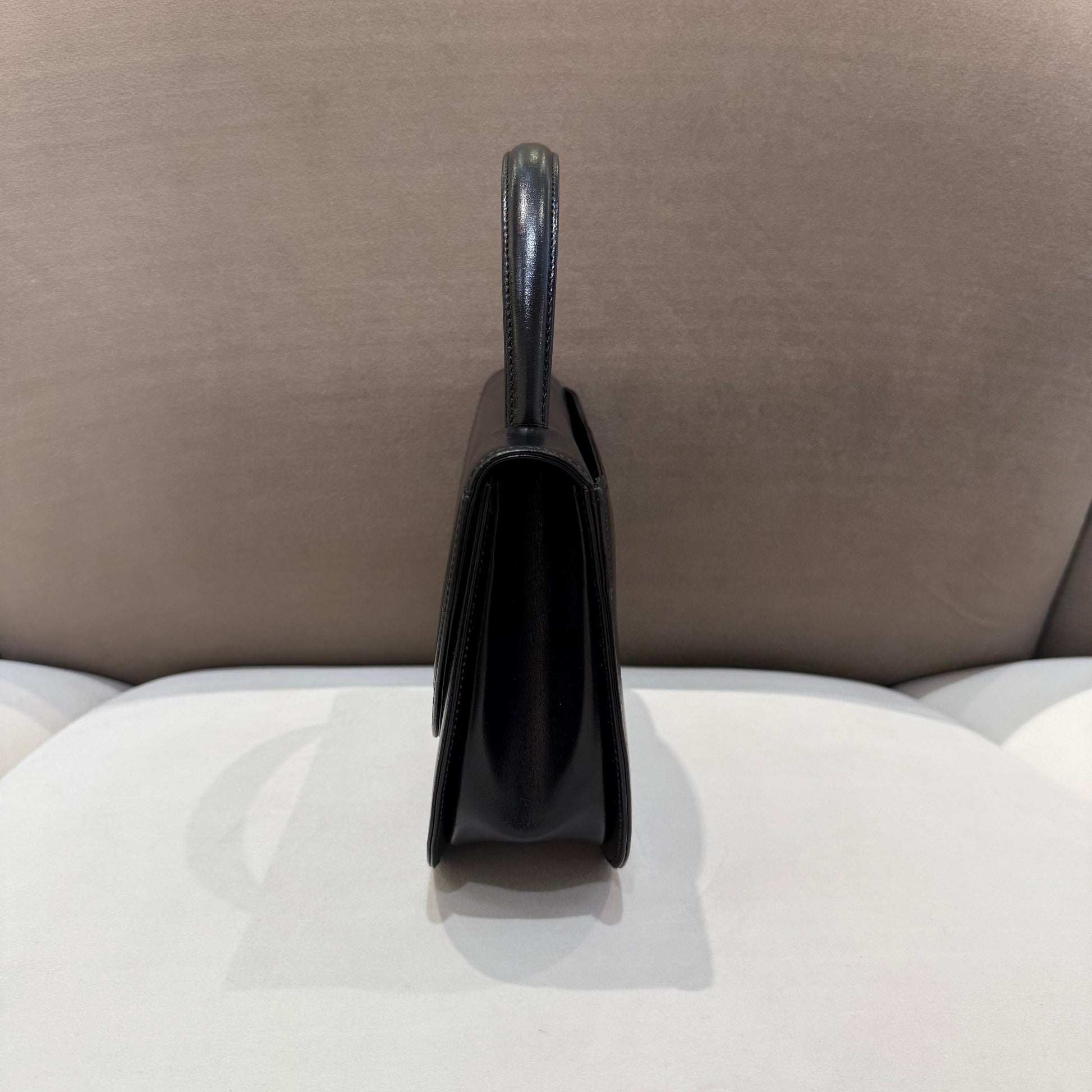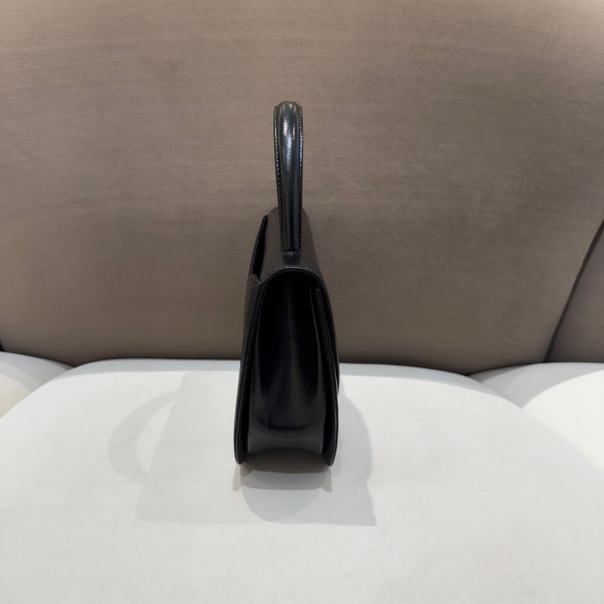 紀梵希復古黑色皮革弧形頂部手柄手提包