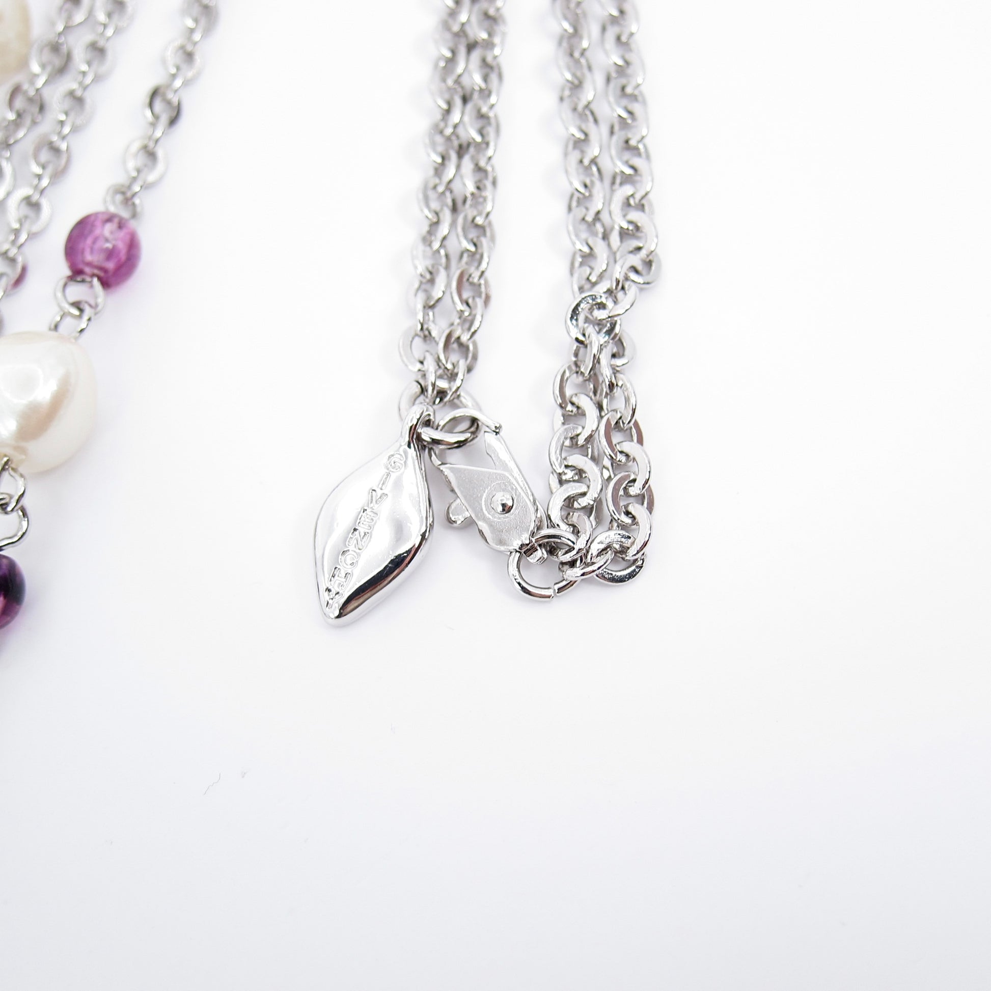 Givenchy Vintage Pearl and Purple Bead Silver Long Necklace