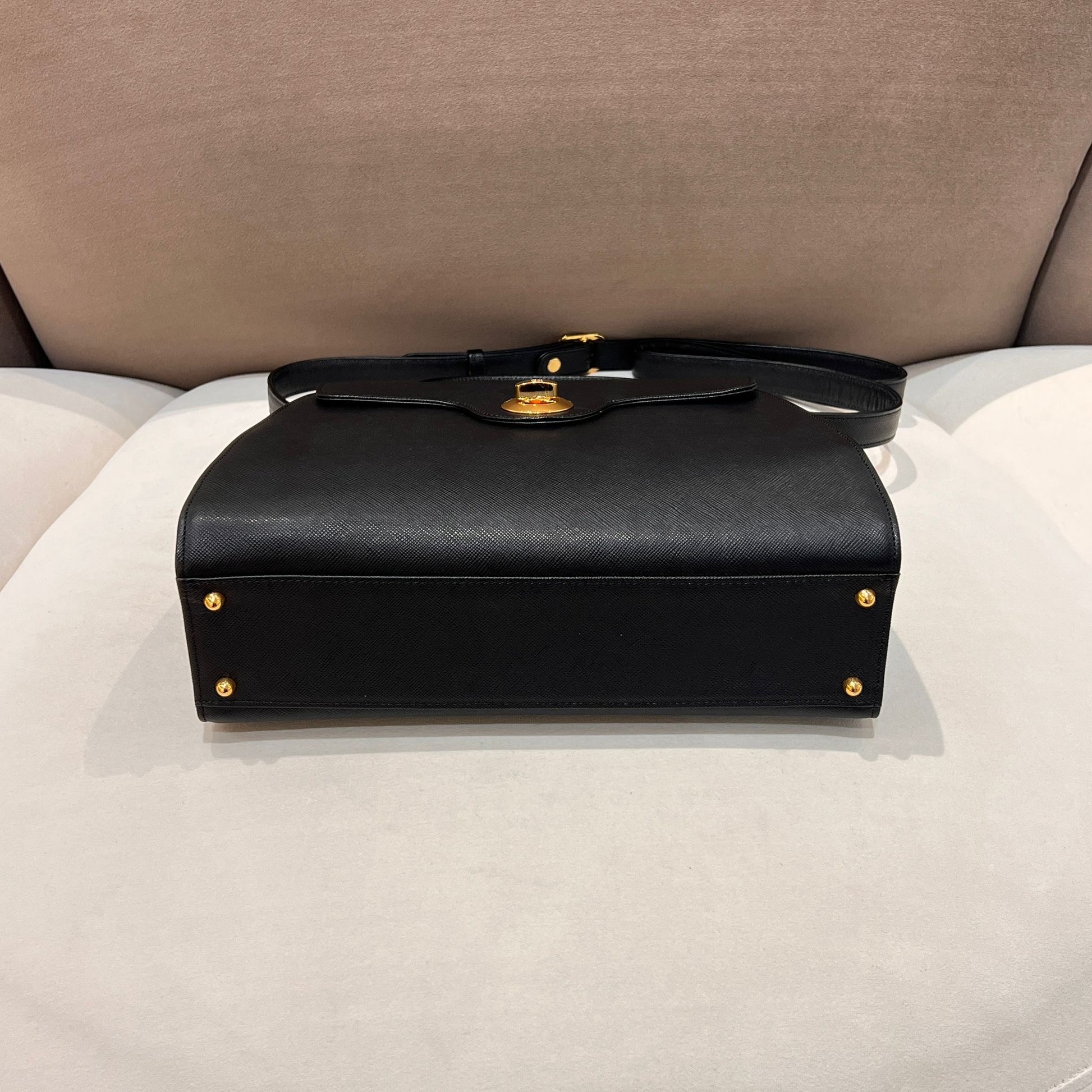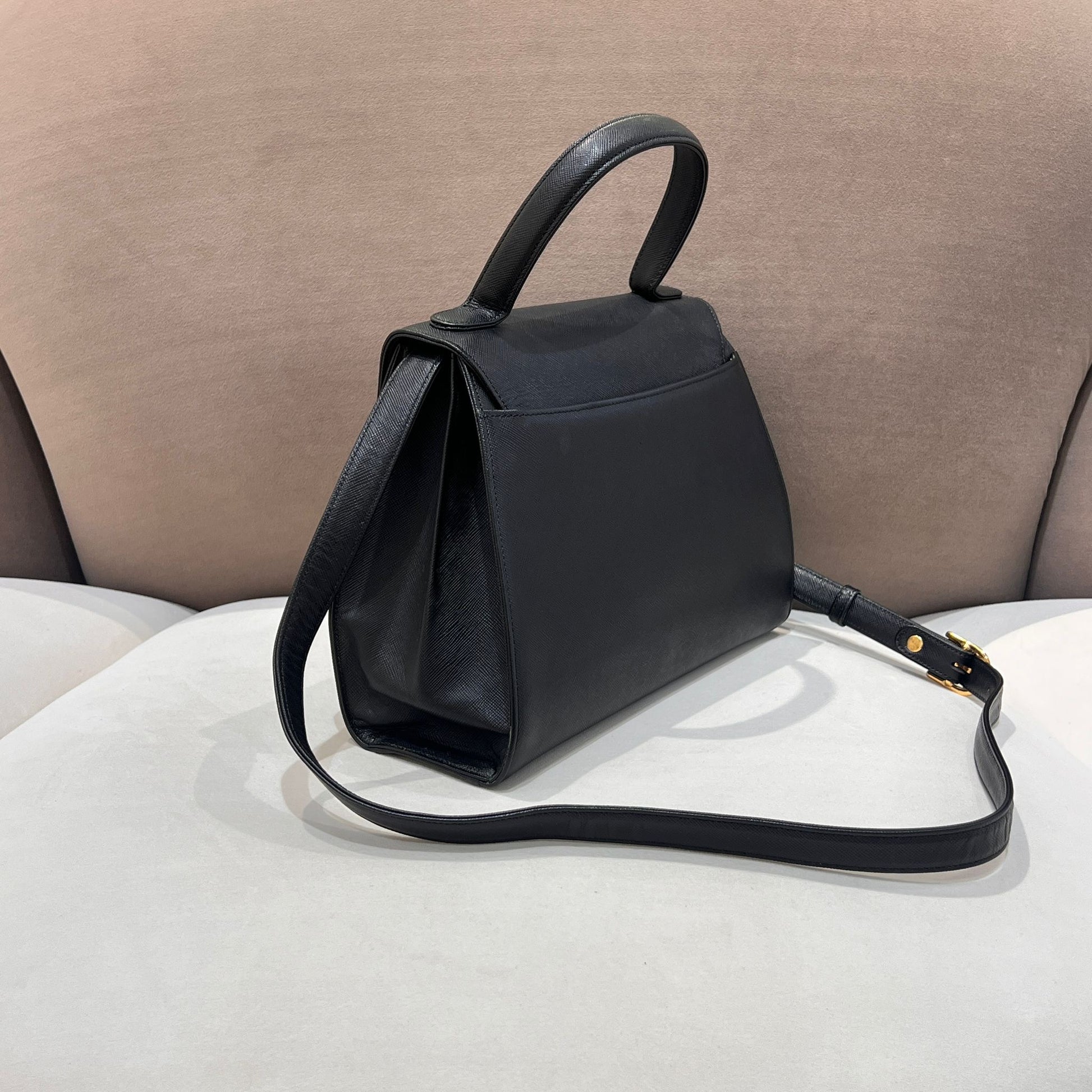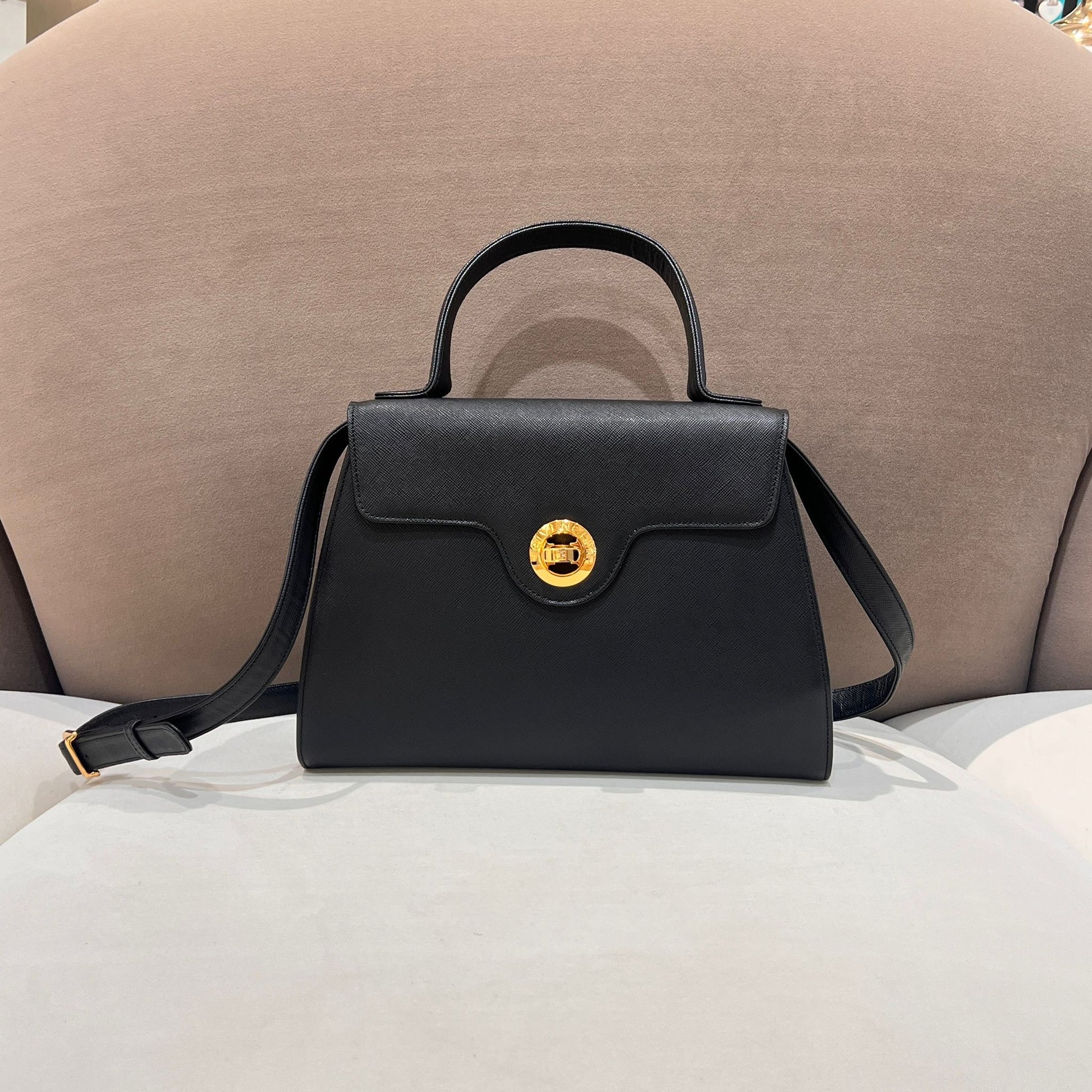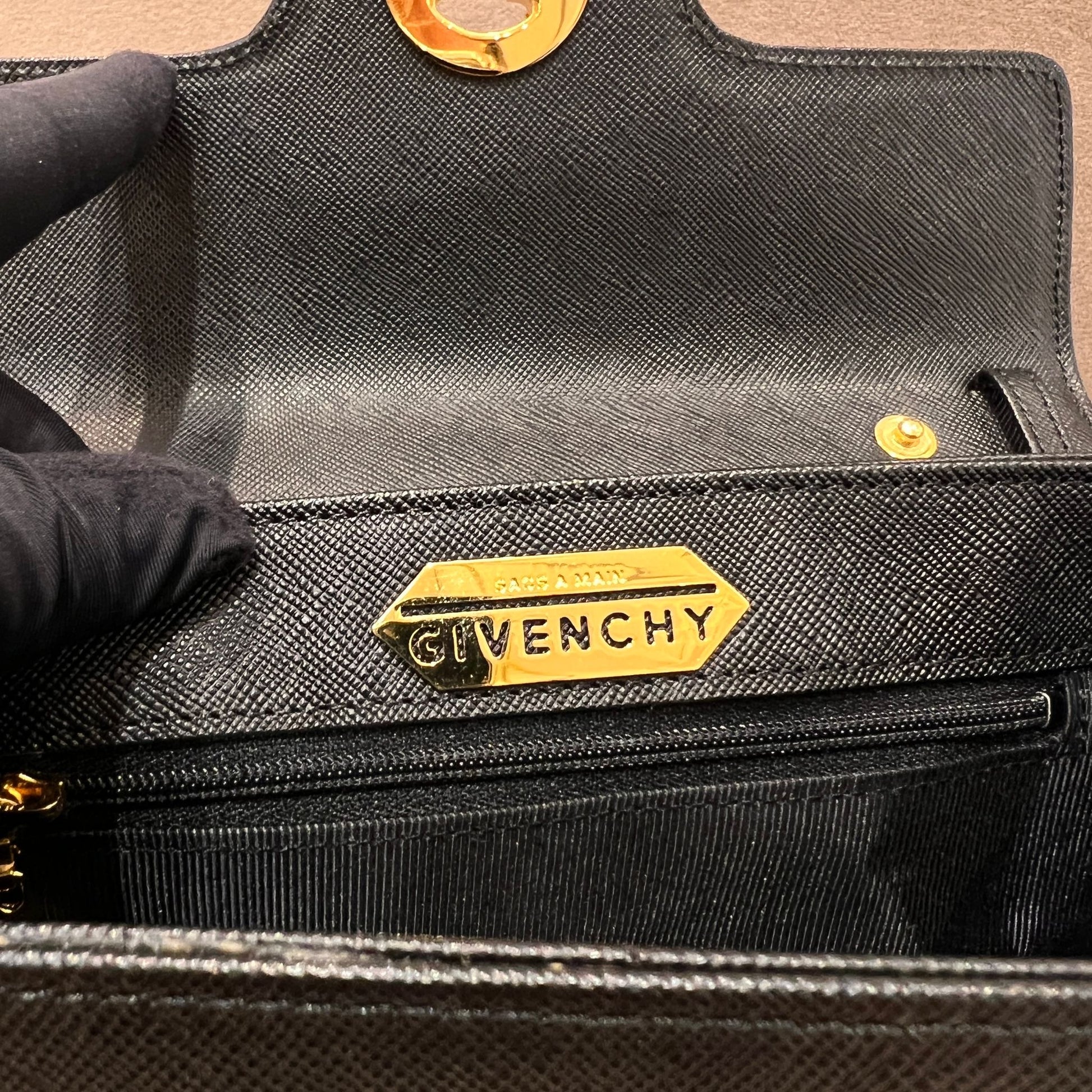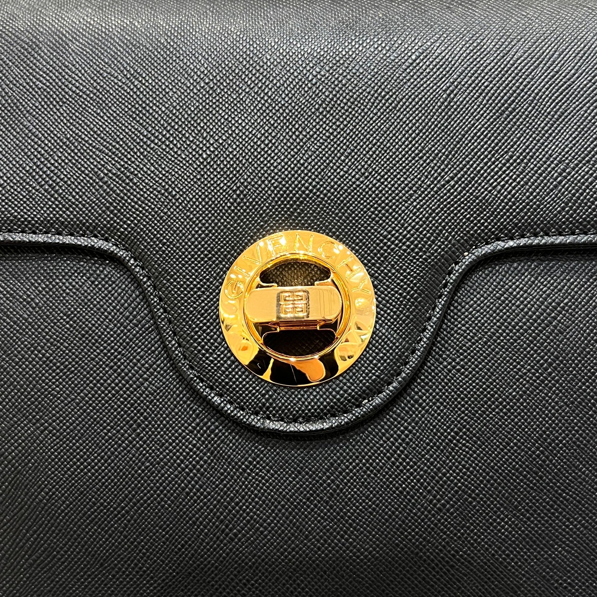 Givenchy Vintage Black Leather Turn Lock 2-Way Top Handle Bag