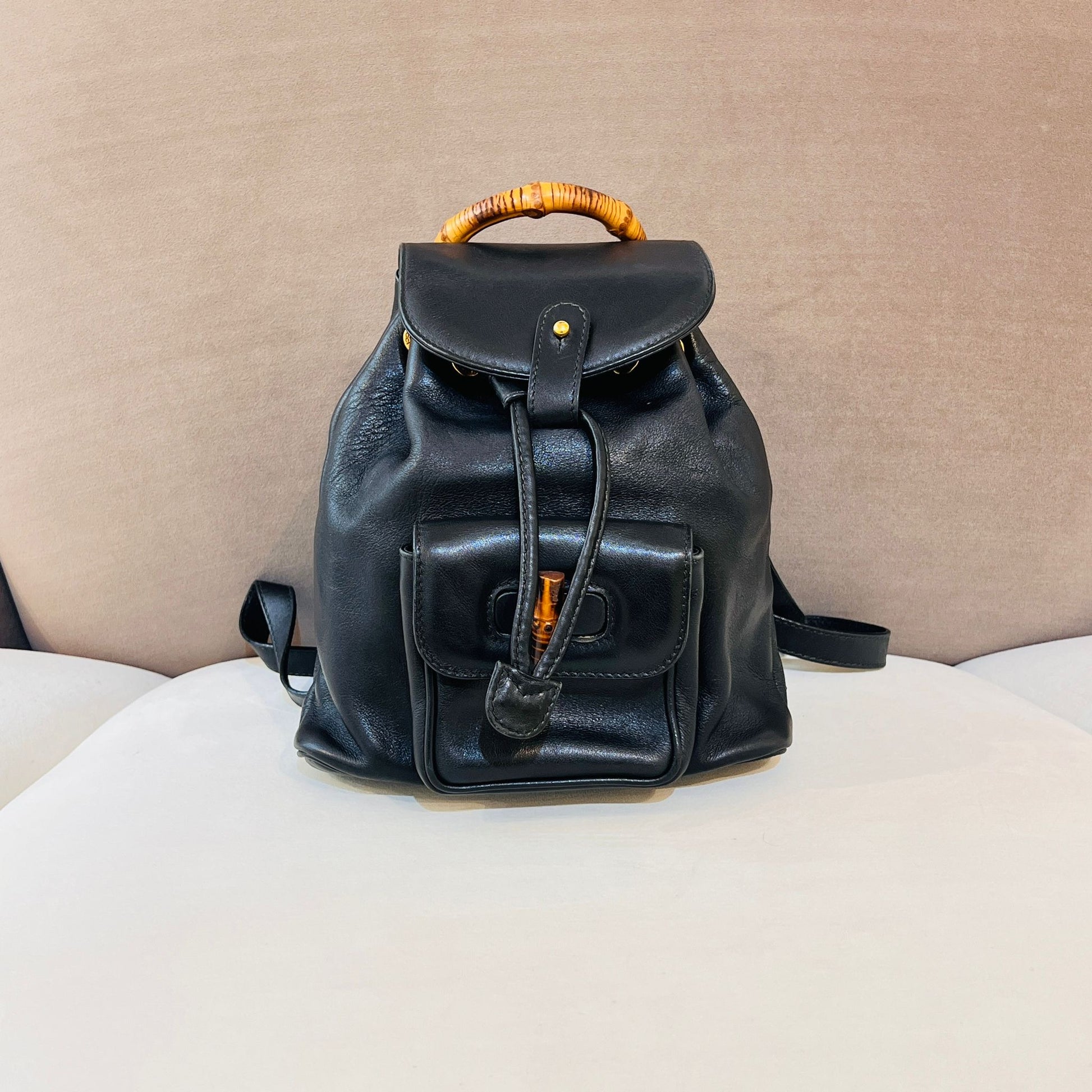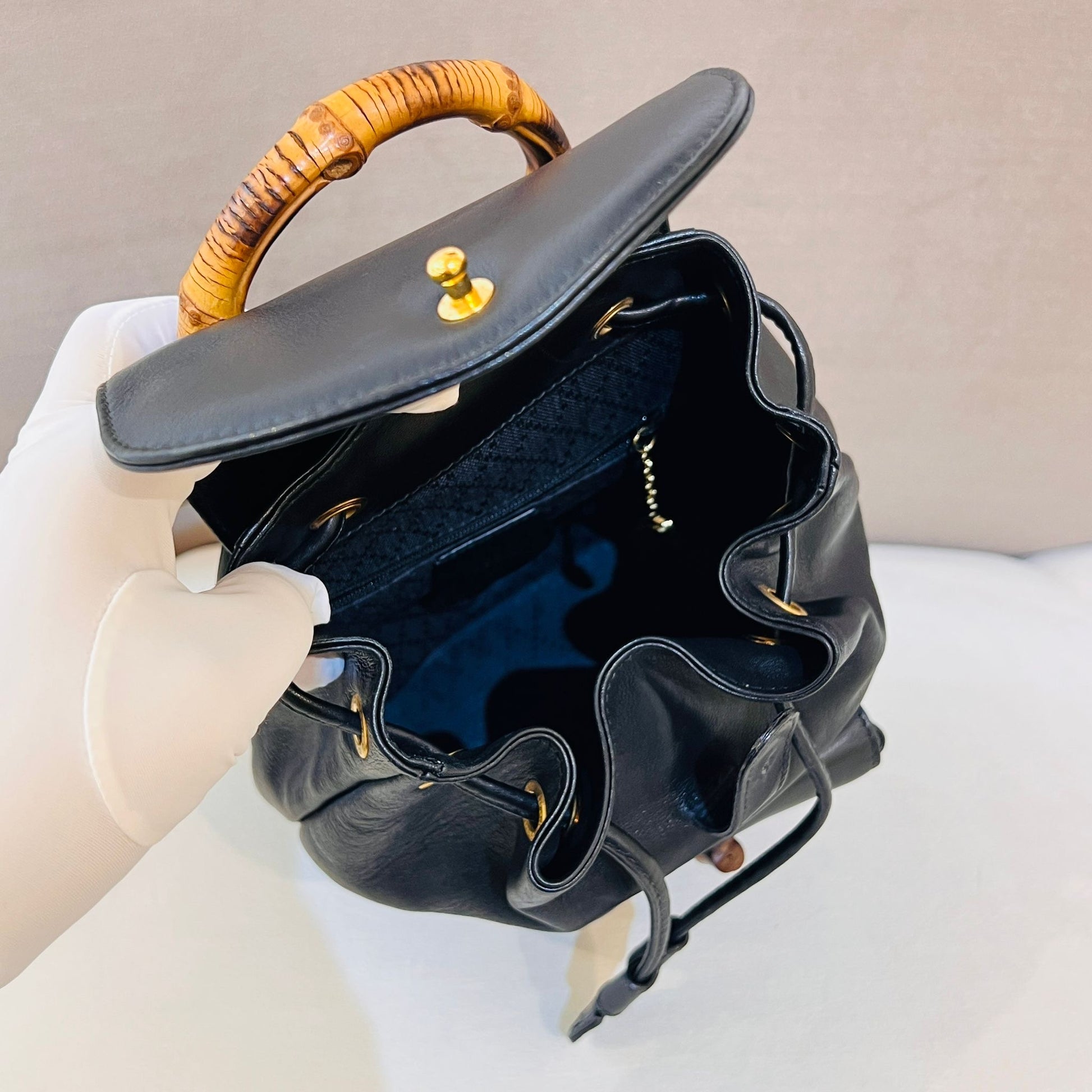 Gucci Vintage Bamboo Black Leather Small Backpack