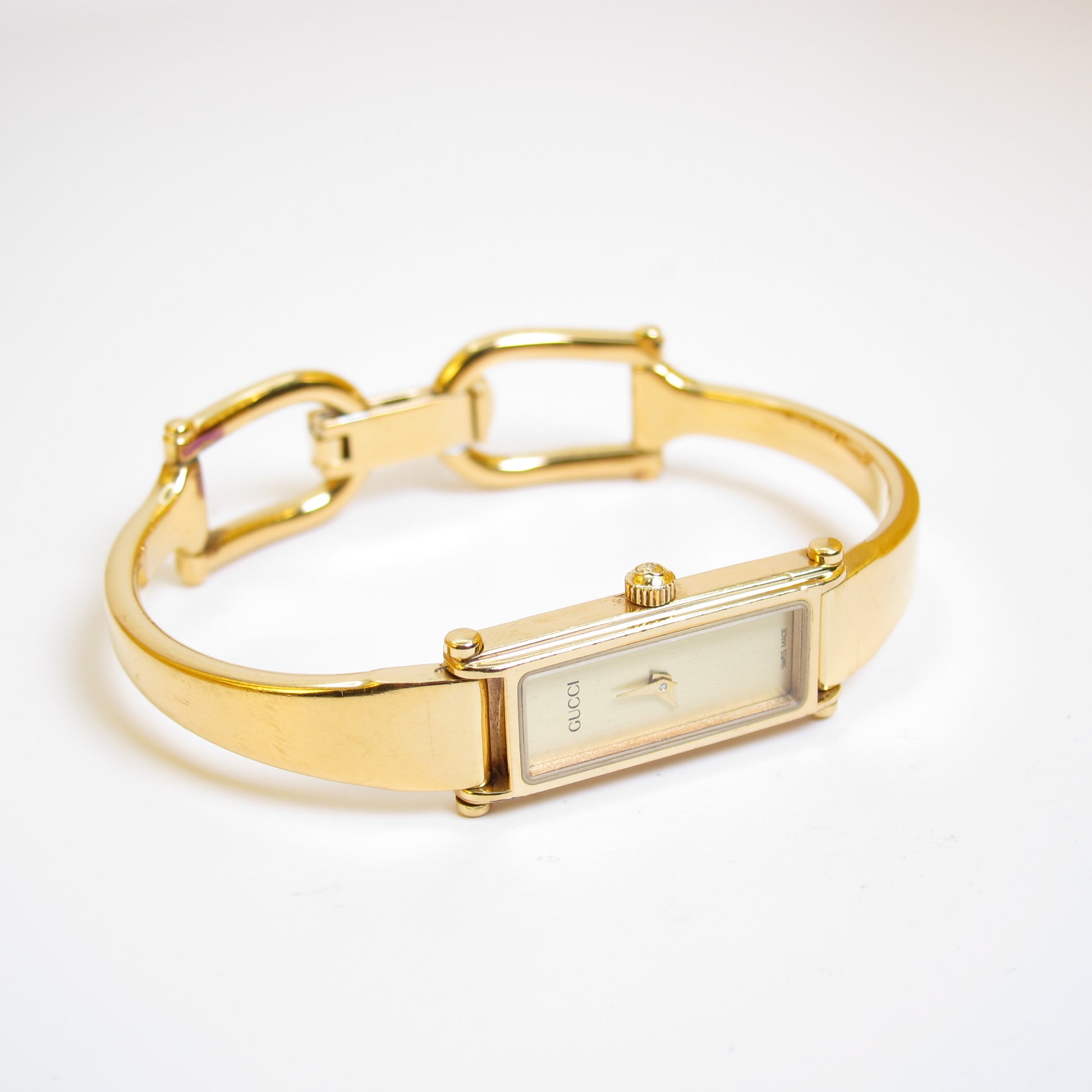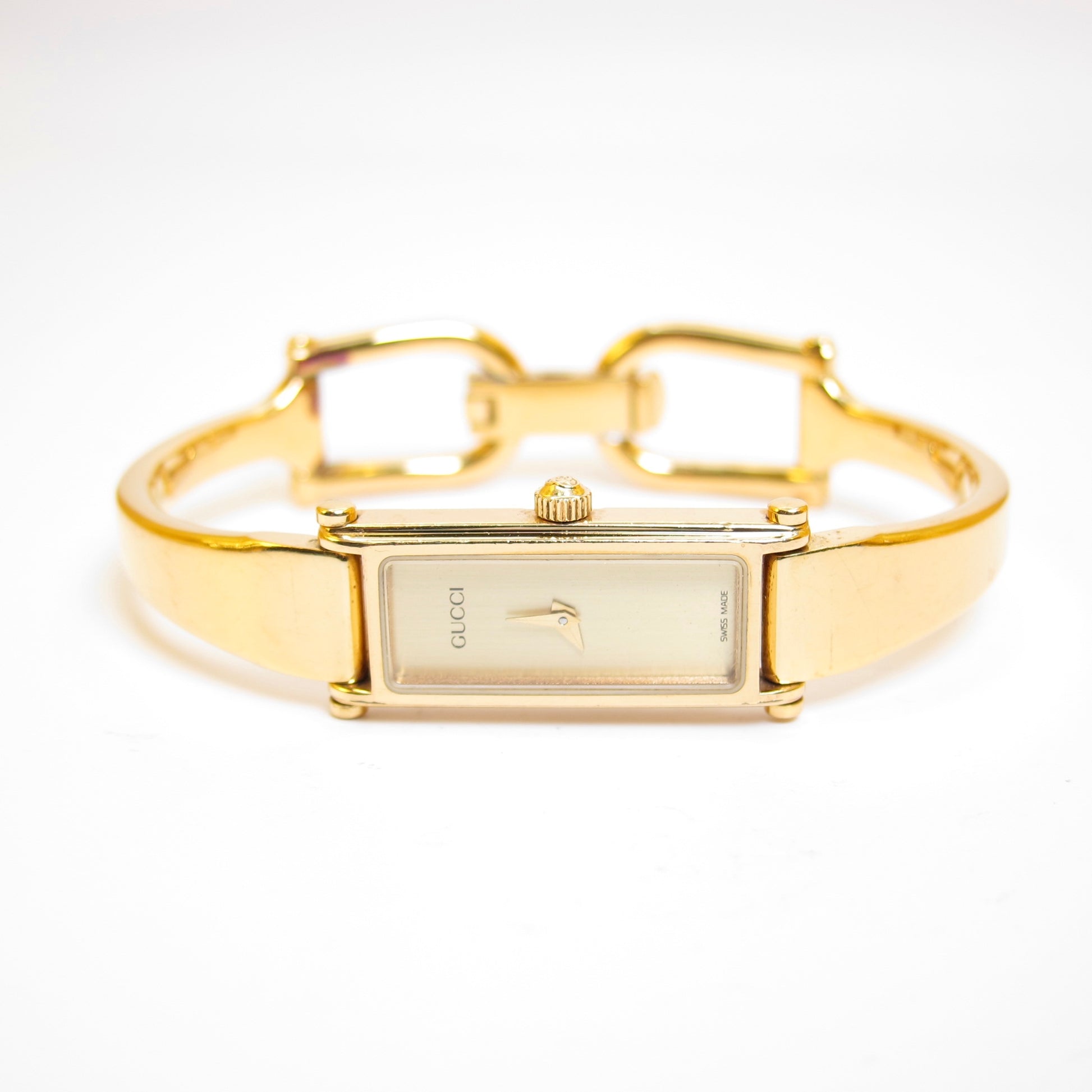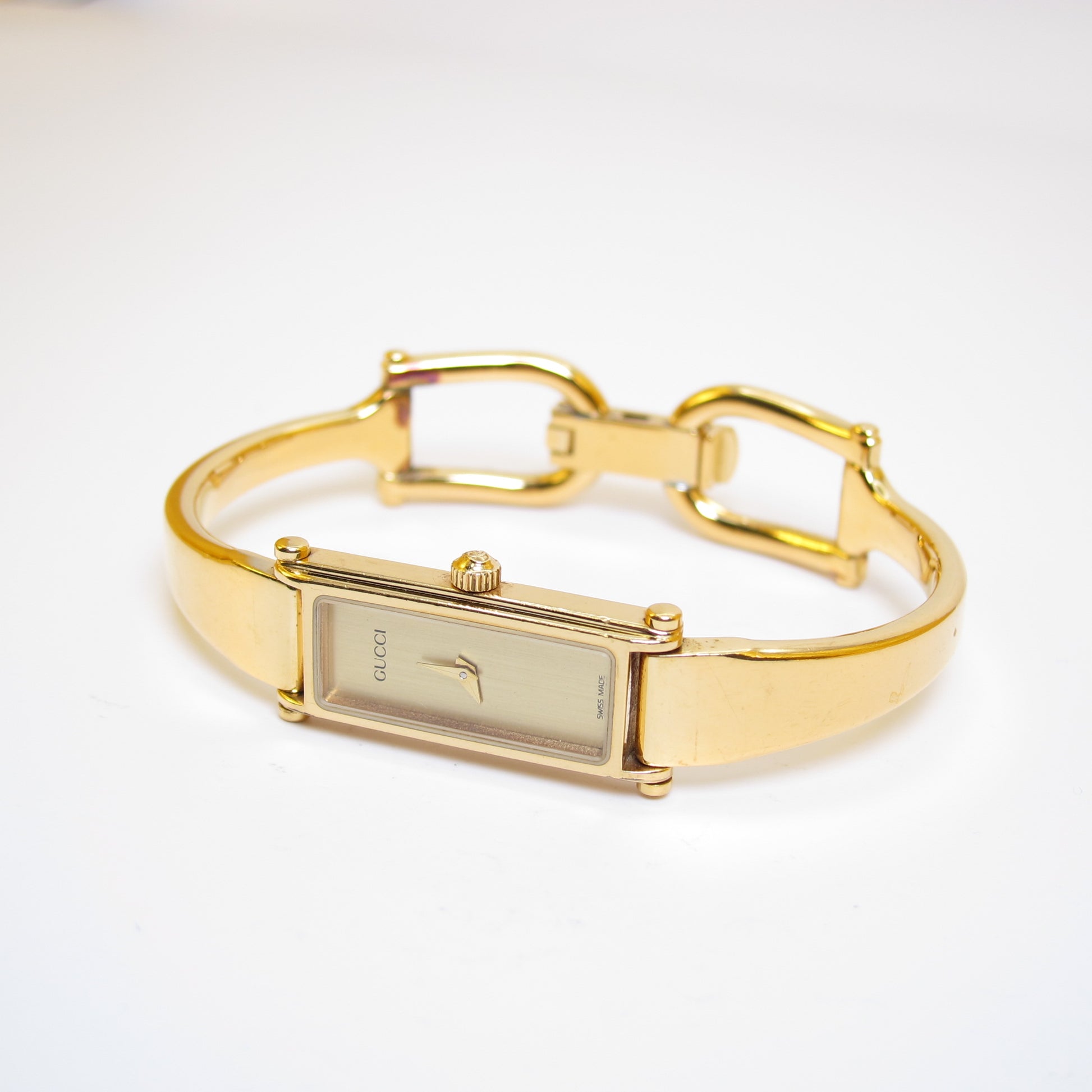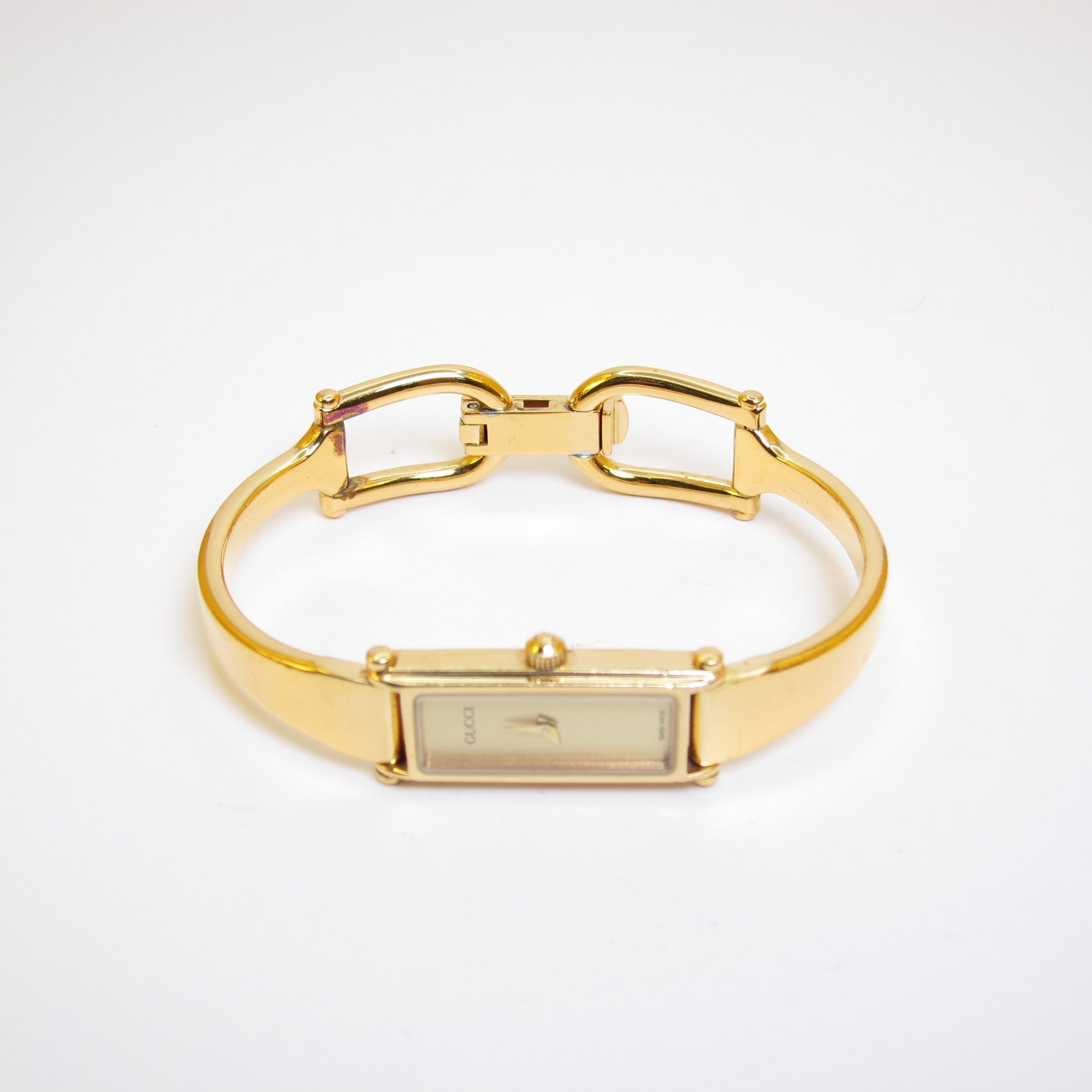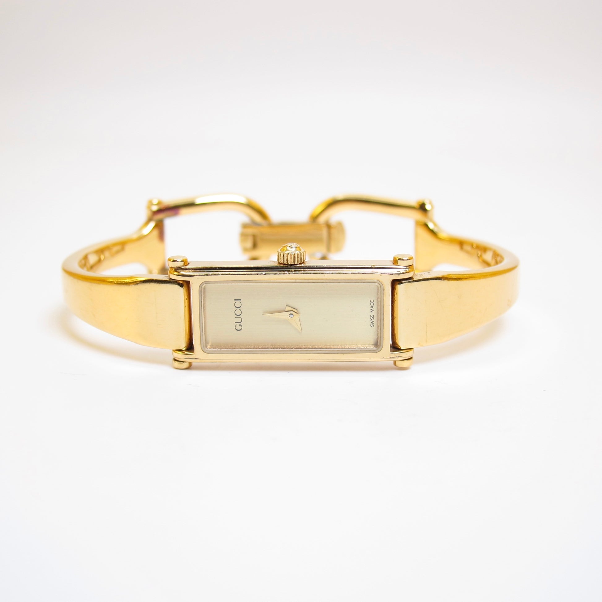 Gucci 復古長方形金色錶盤手鐲腕錶