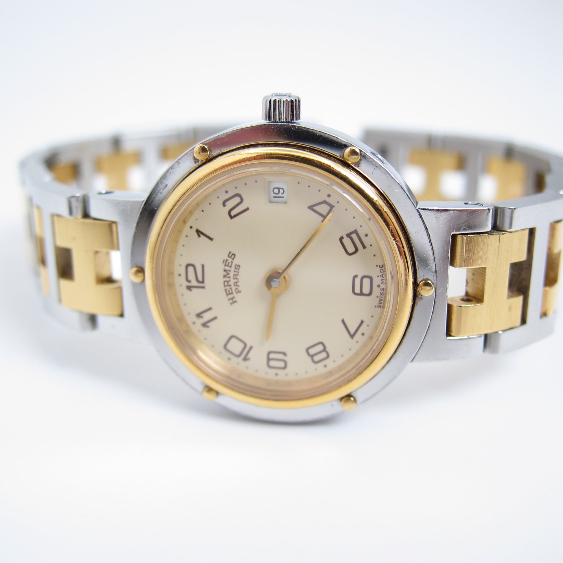 愛馬仕復古 Clipper 象牙色錶盤帶日期和 H 型錶帶女士手錶