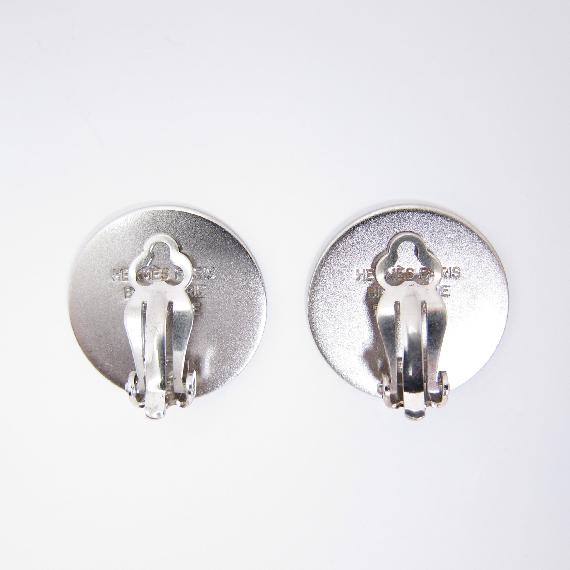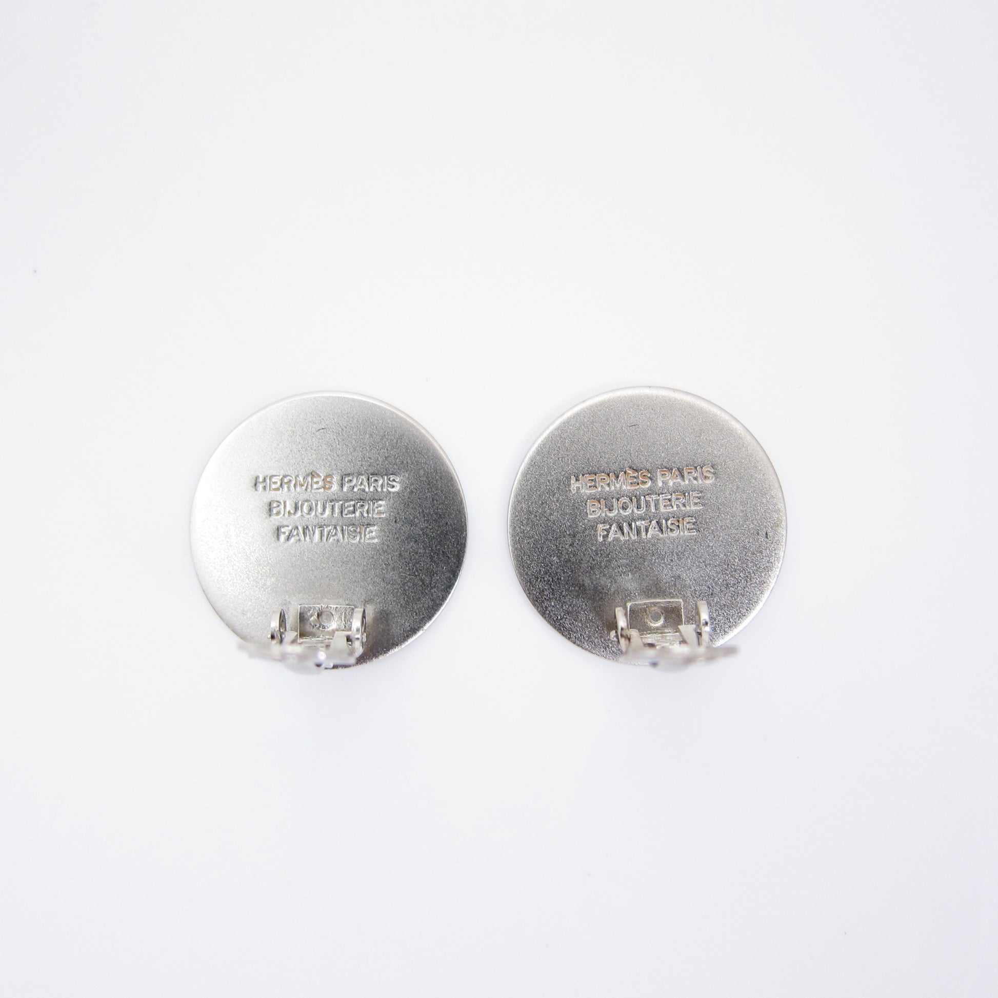 Hermes Vintage Hermes Logo on Round Shape Silver Clip-on Earrings