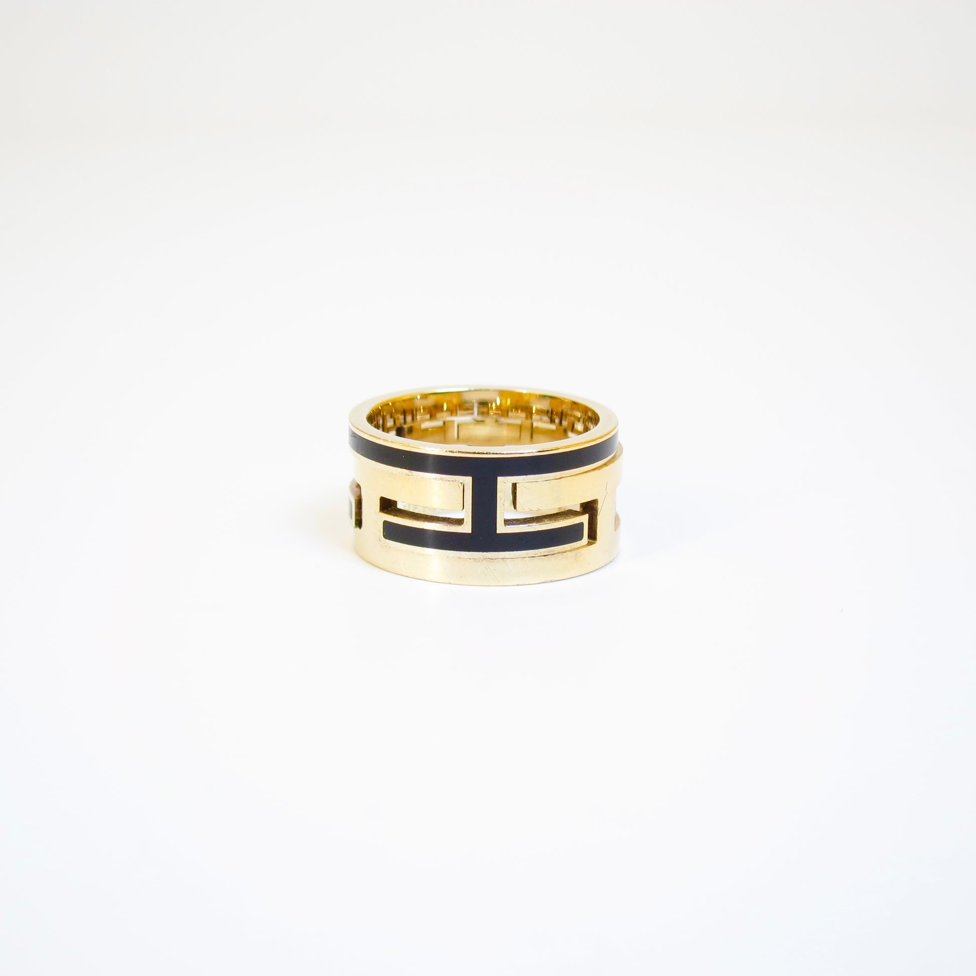 Hermes Vintage Move Ash SV 925 Black and Golden Ring #51