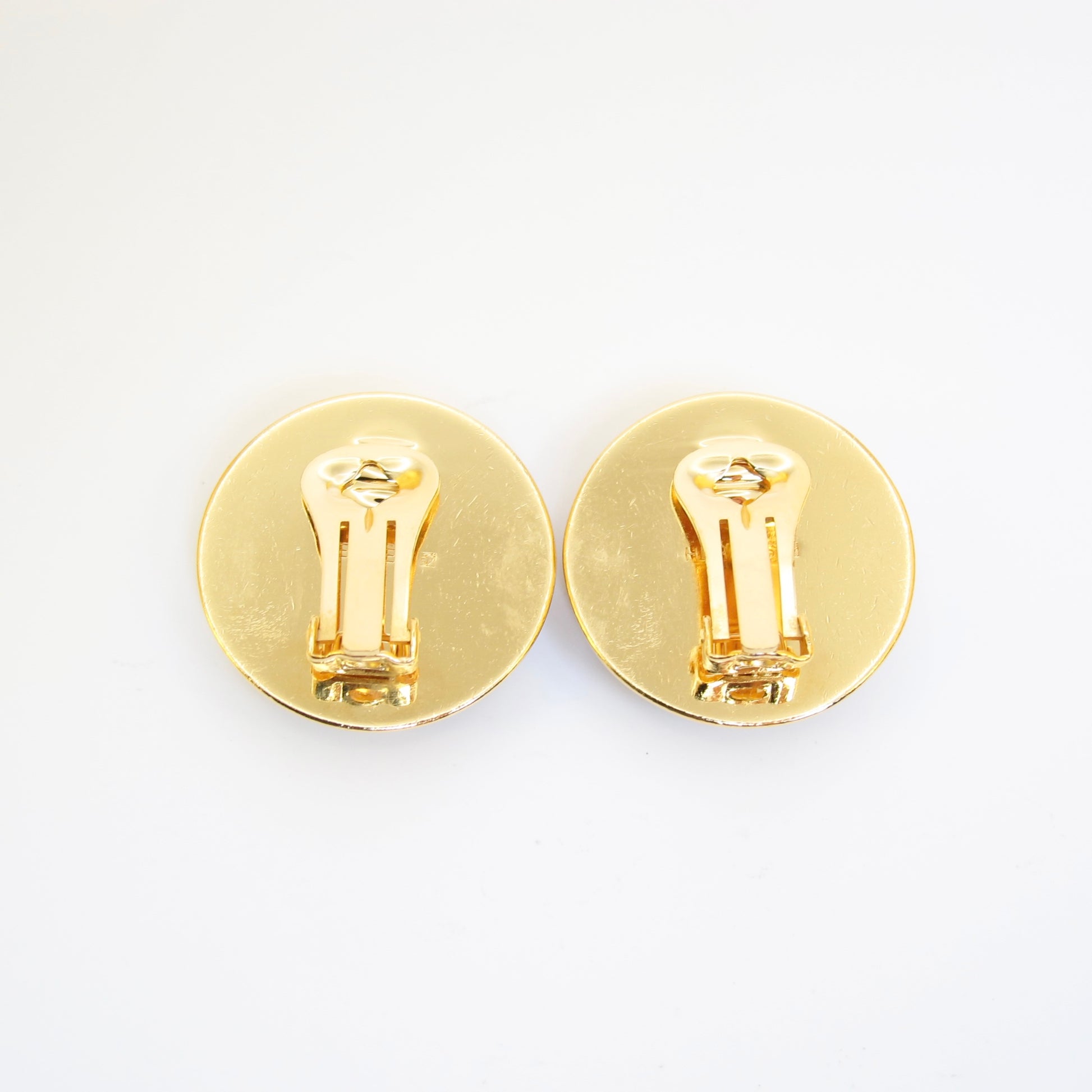 Hermes Vintage Round Shape Black Enamelled Golden Clip-on Earrings