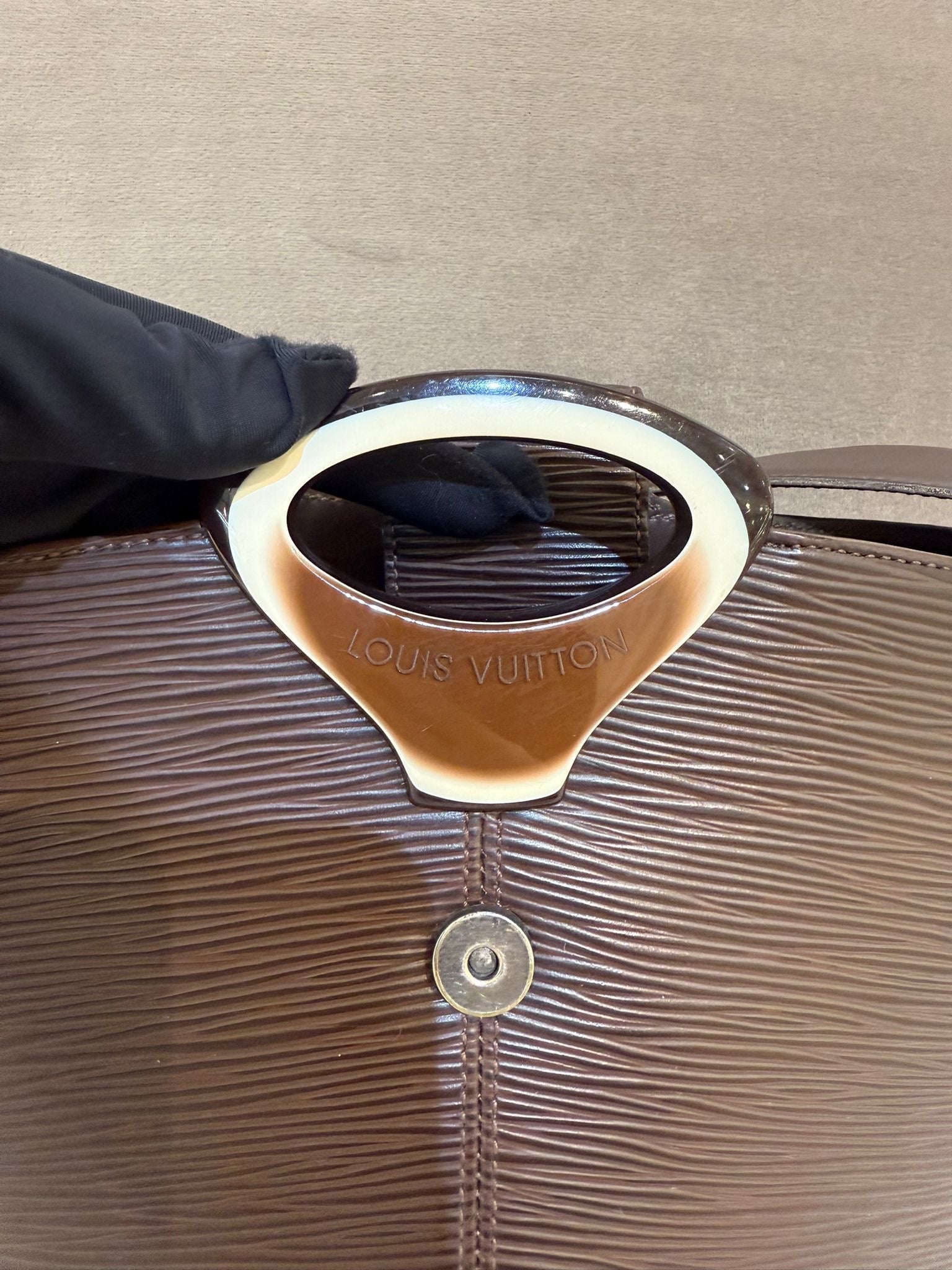 Louis Vuitton Revi 袋款以摩卡啡色 Epi 皮革打造,低調奢華且罕見。挺身袋型配合頂部扣環,既實用又具收藏價值。