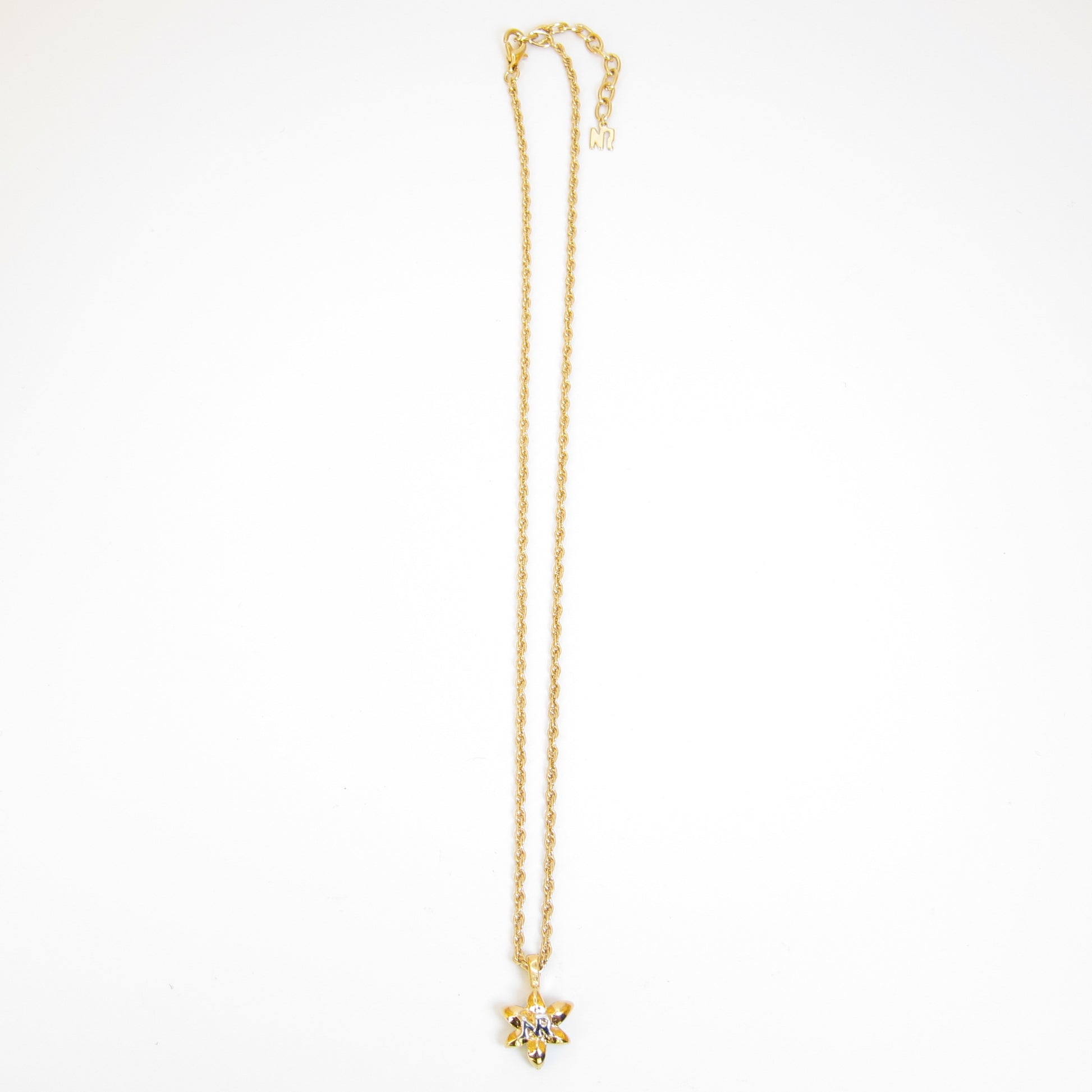 Nina Ricci Vintage NR Logo on Folwer Golden Necklace
