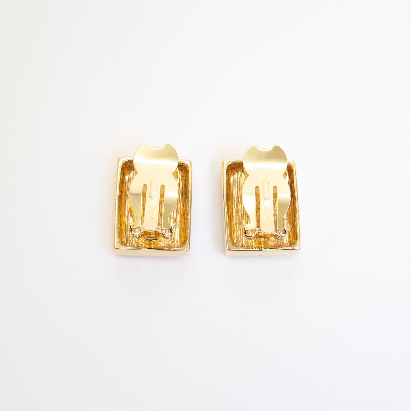 Yves Saint Laurent Vintage YSL Logo on Rectangle Golden Clip-on Earrings