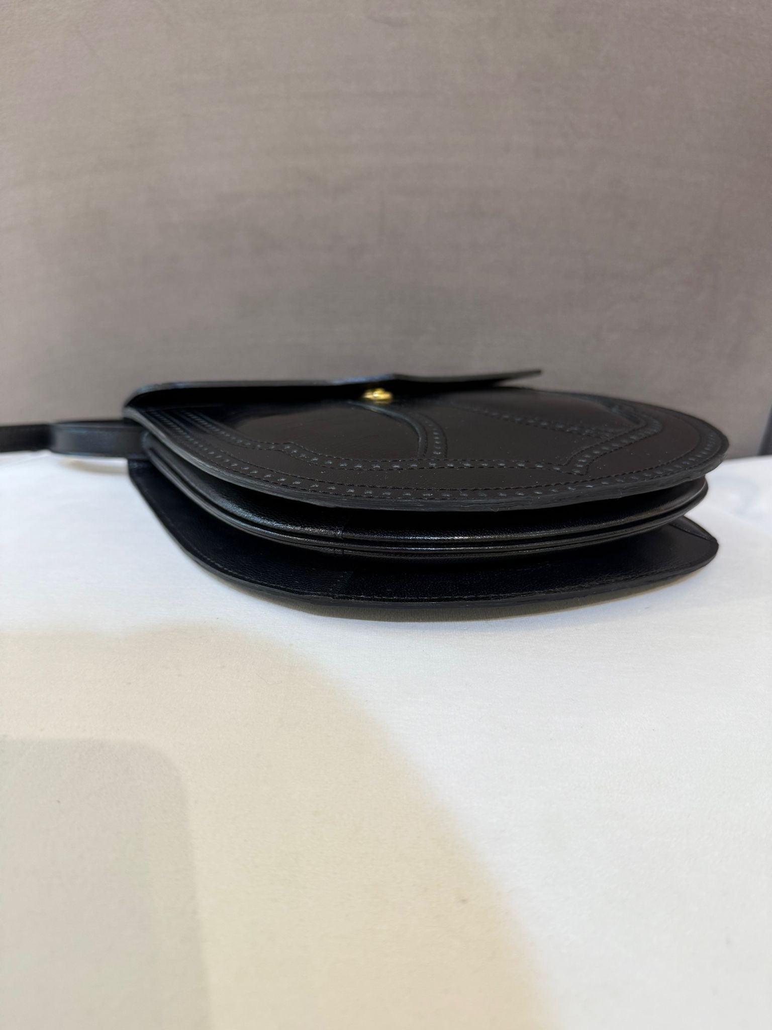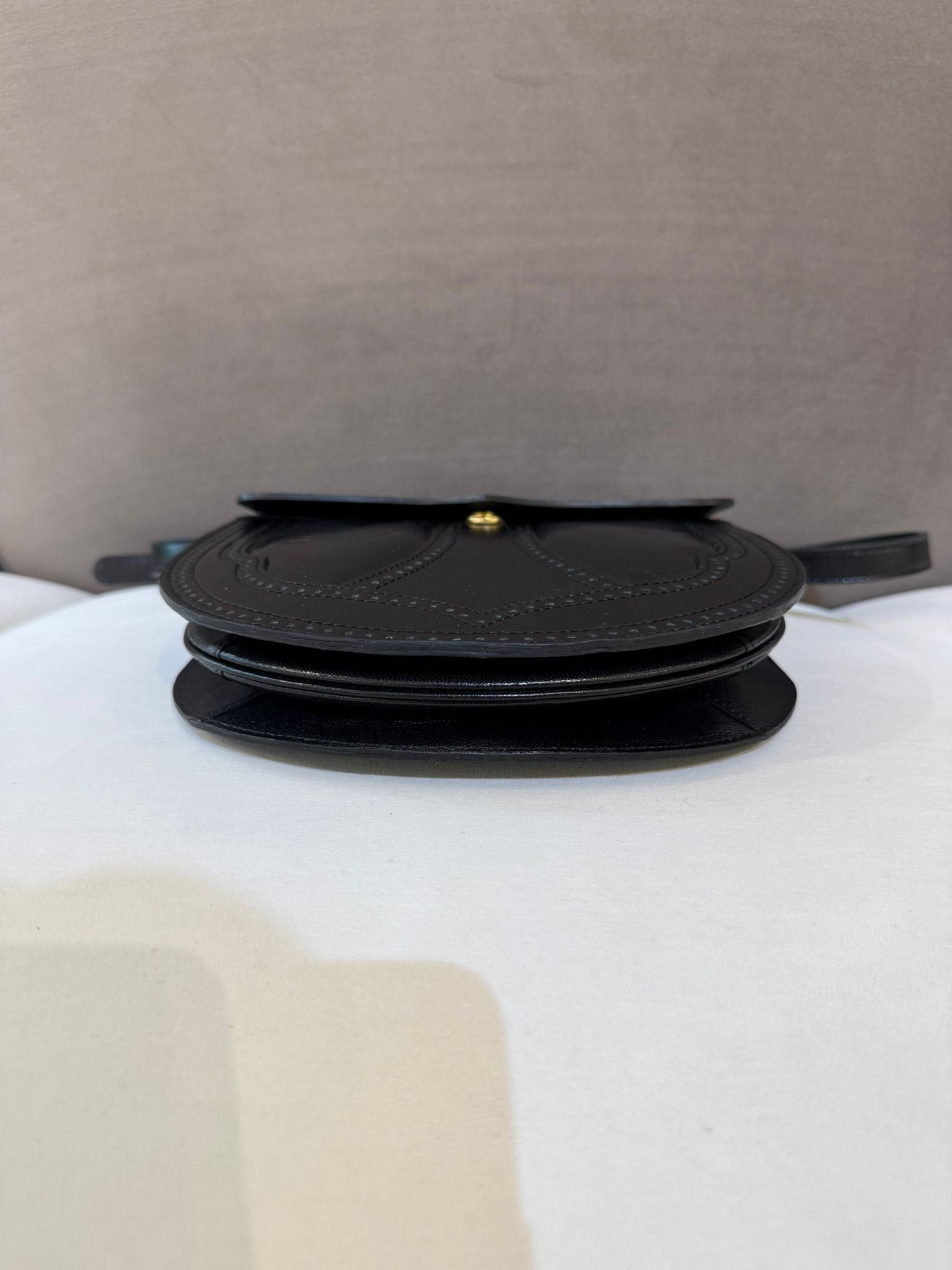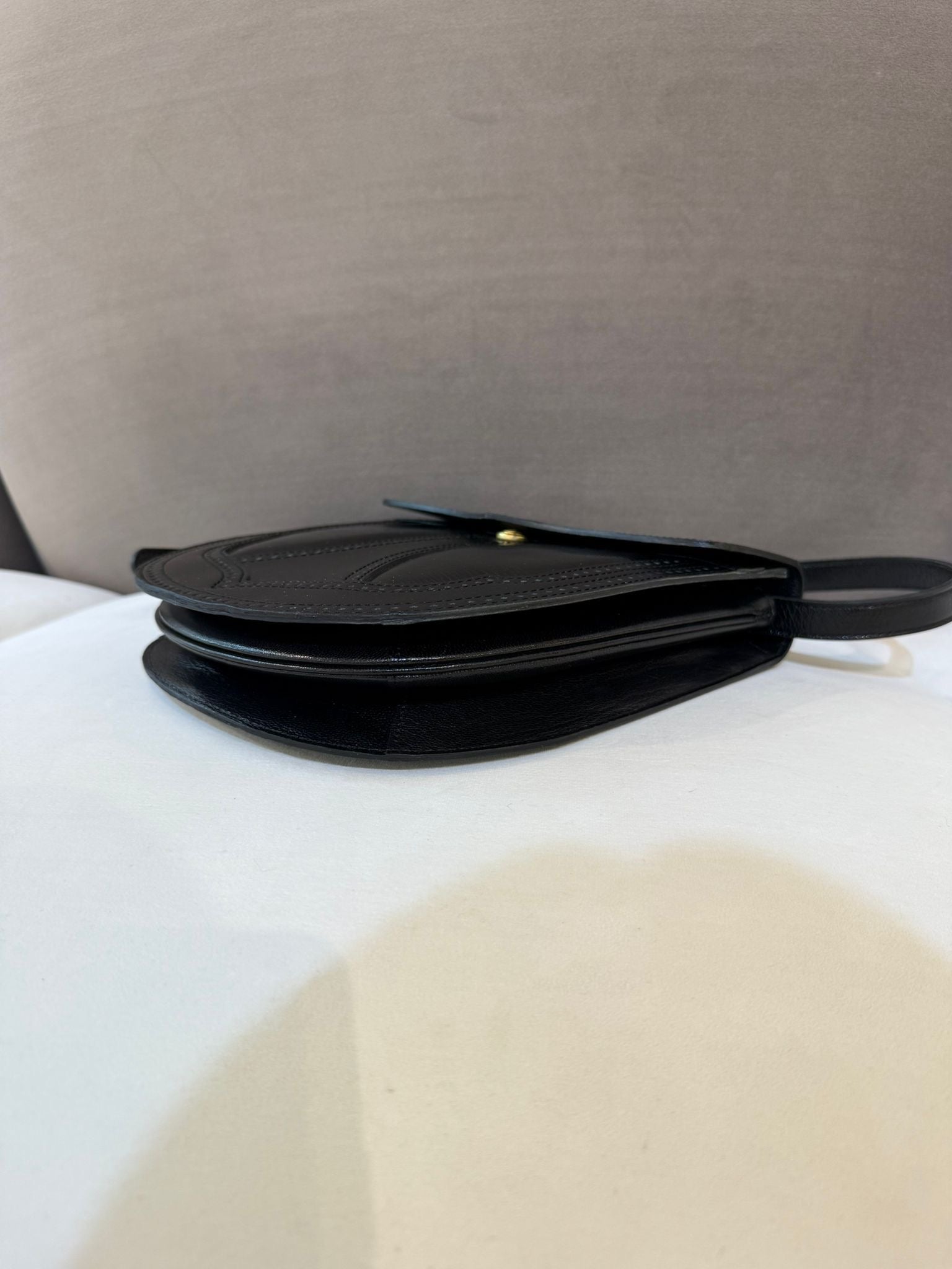 這款 YSL 復古肩背包以巴黎高訂氣質著稱,挺身翻蓋結構搭配光滑黑色皮革,細膩縫線細節彰顯低調卻經典的設計語言,並附原裝防塵袋,兼具實用與收藏價值。