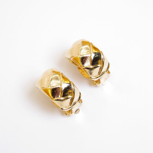 Yves Saint Laurent Vintage Quilted Golden Hoop Clip-on Earrings